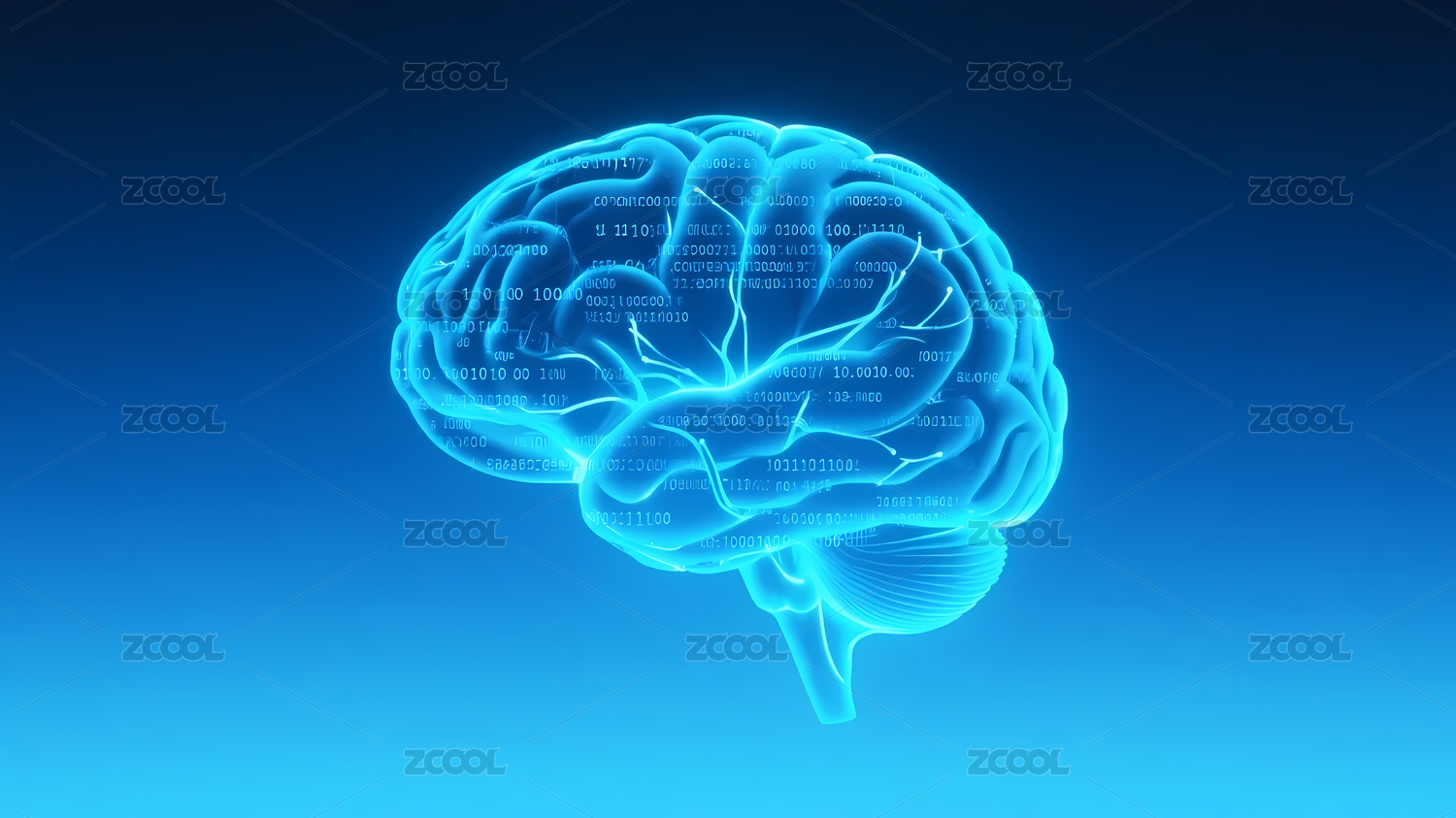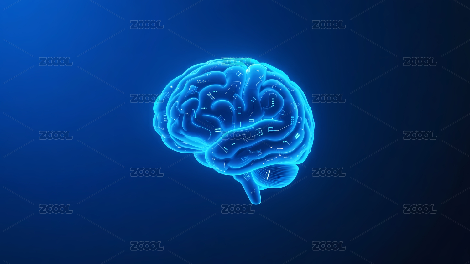 蓝色,渐变,神秘,科技,未来,深色,发光,轮廓,大脑,创意