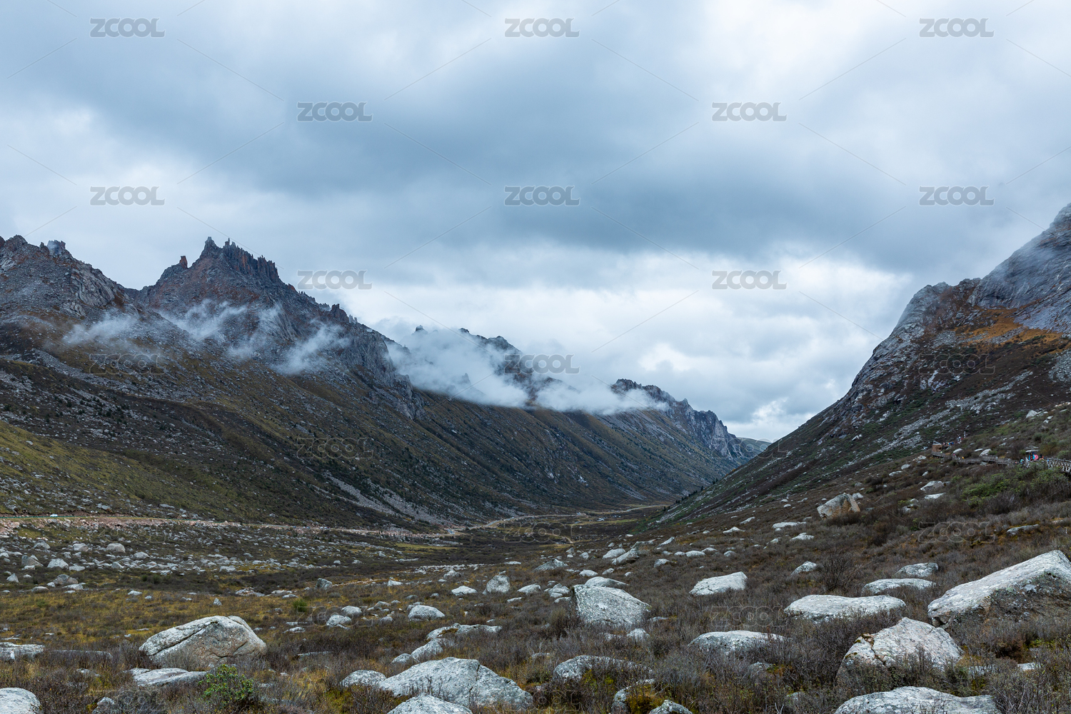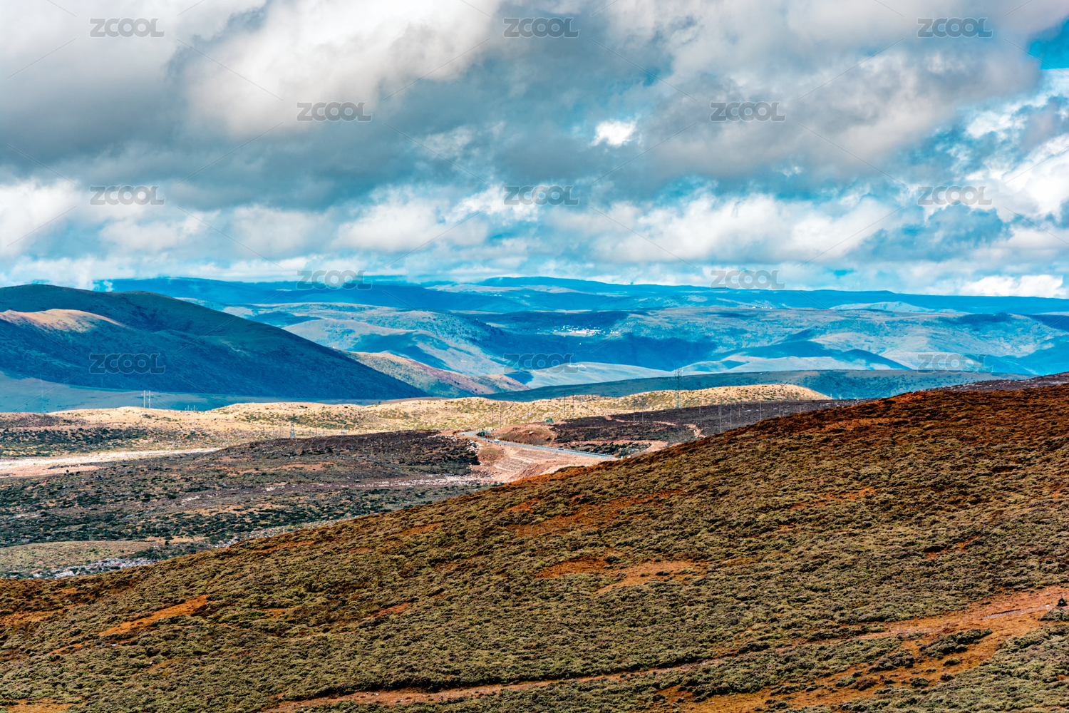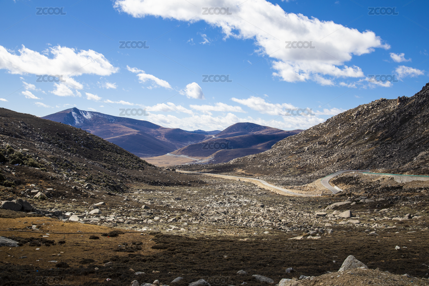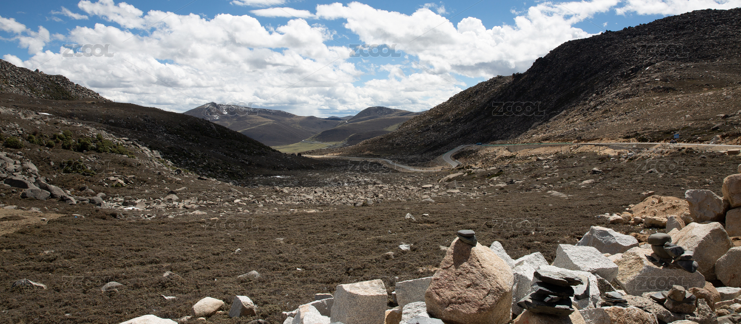 高原,山谷,石堆,山脉,天空,山路,旷野,地貌,风光,玛尼堆