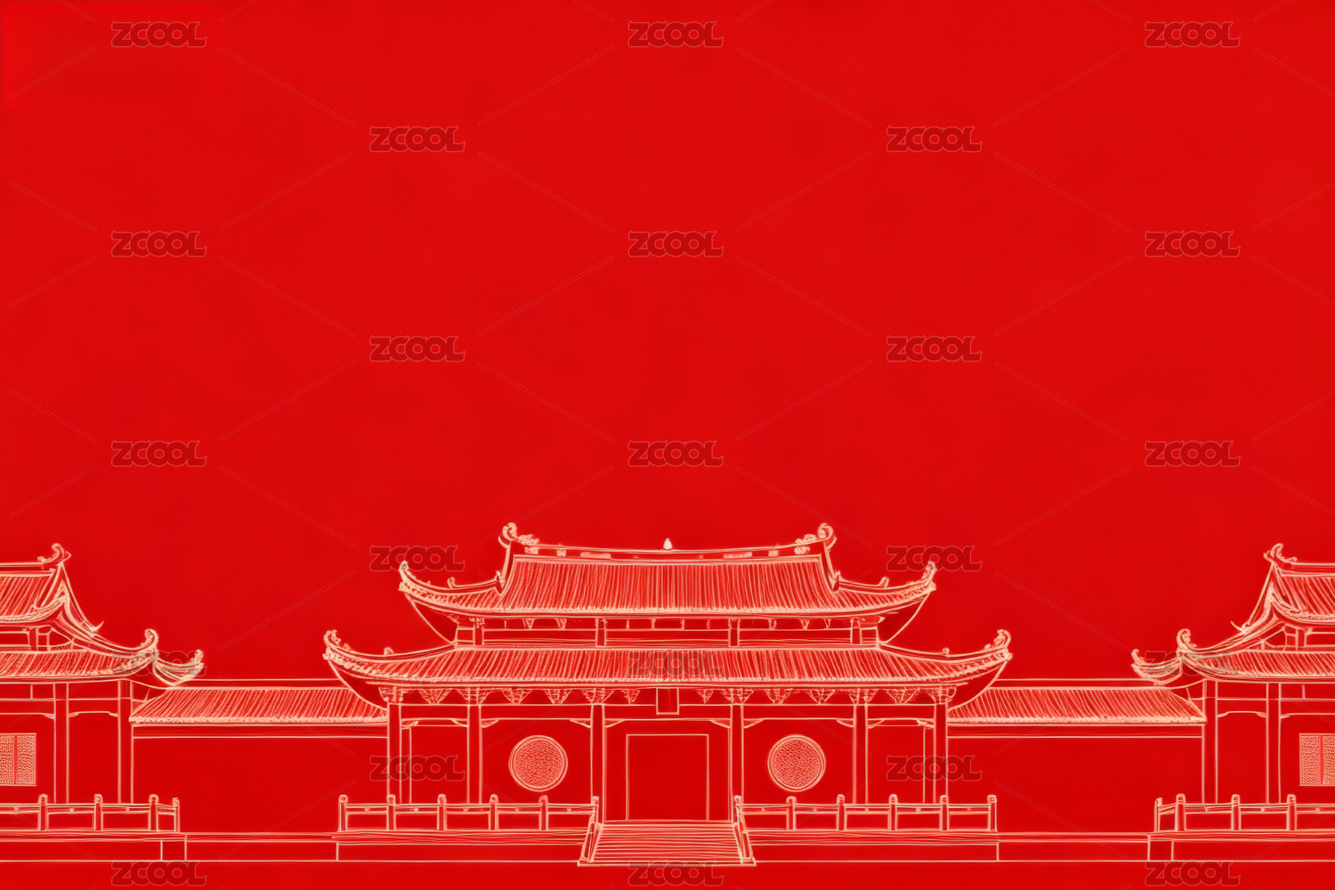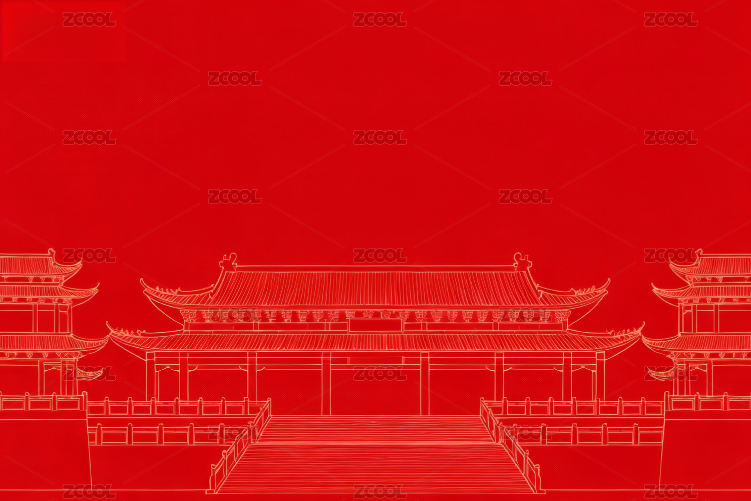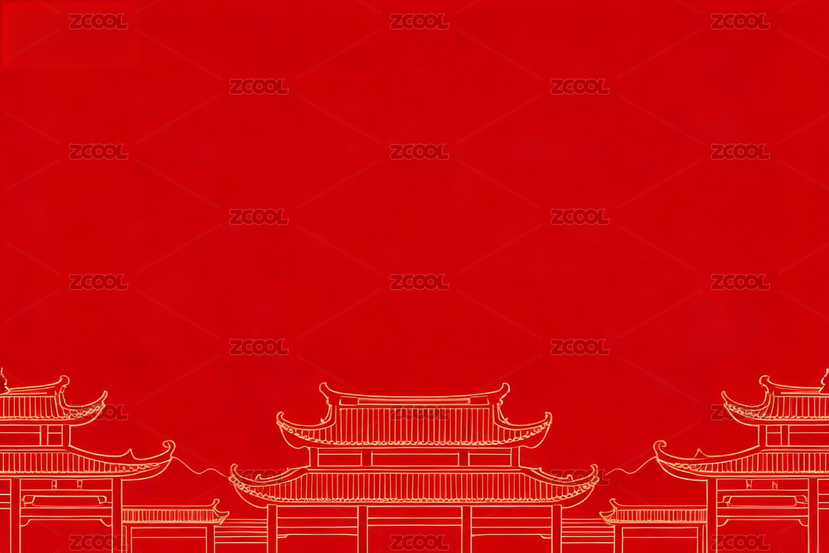 红色背景古建筑