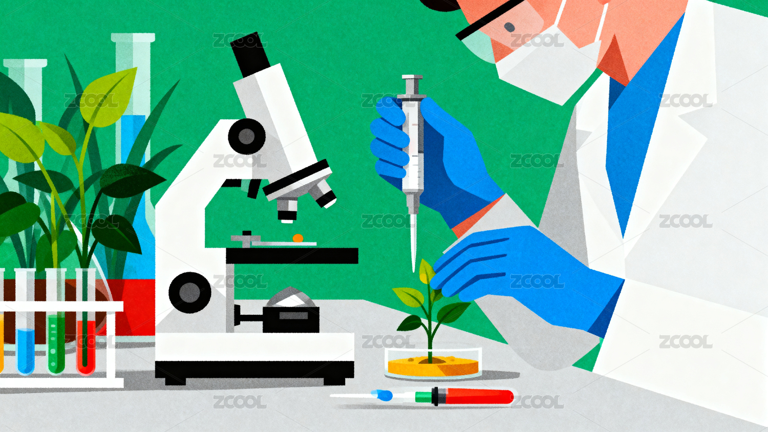 分析,女性,研究,实验室,绿色,光线,显微镜,科学家,试管,工作服
