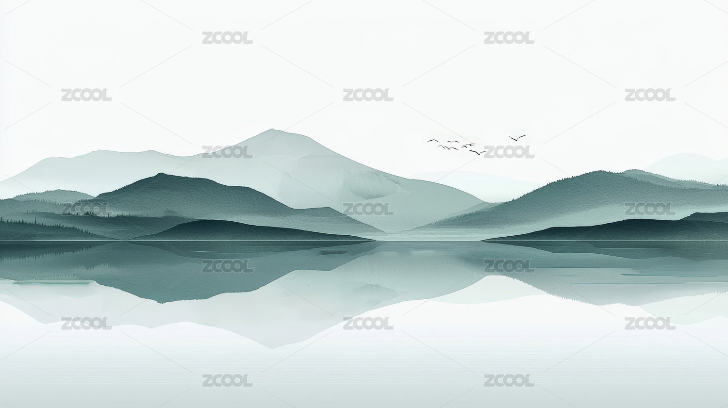 山水画意境静谧山峦倒影