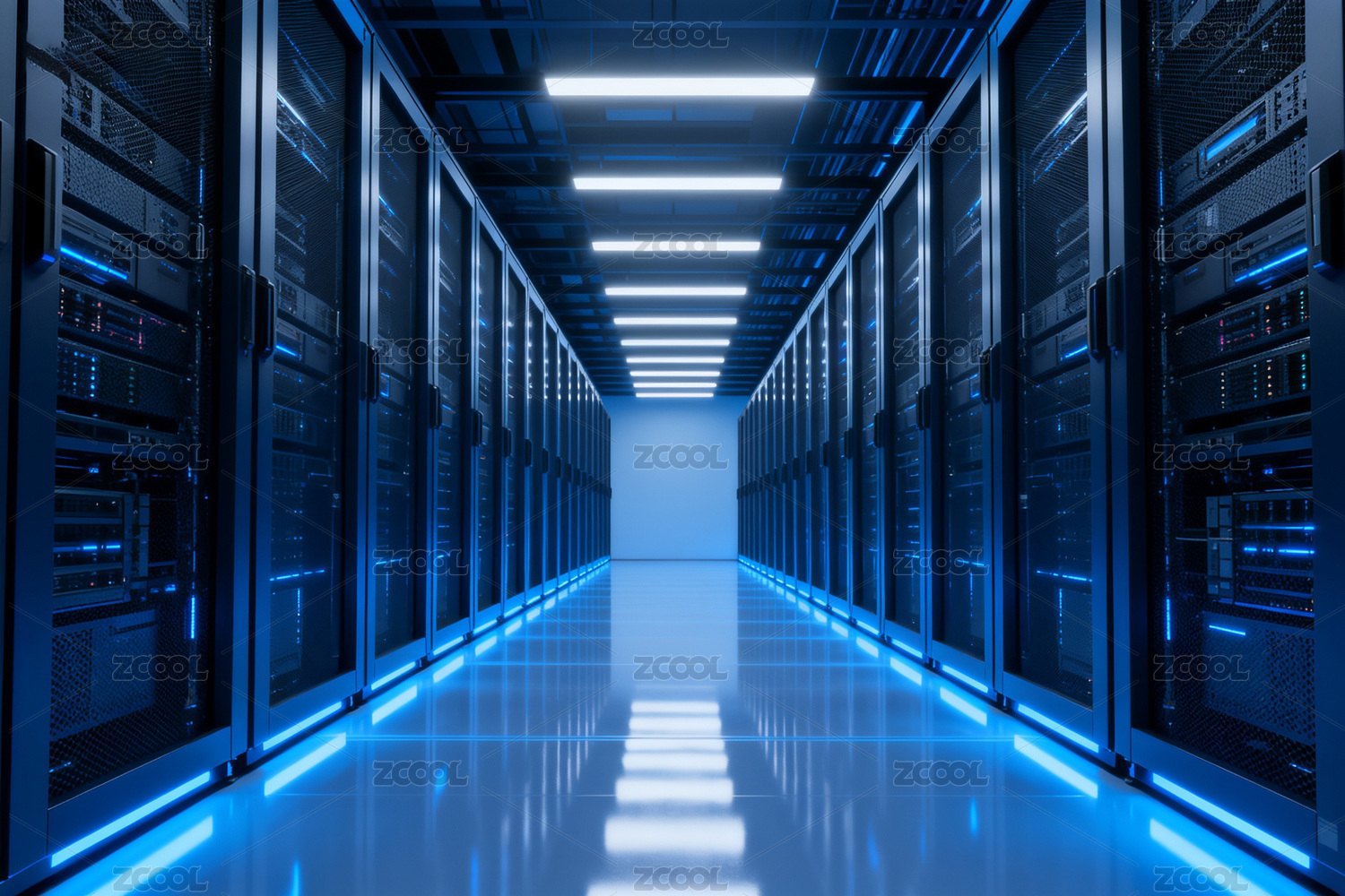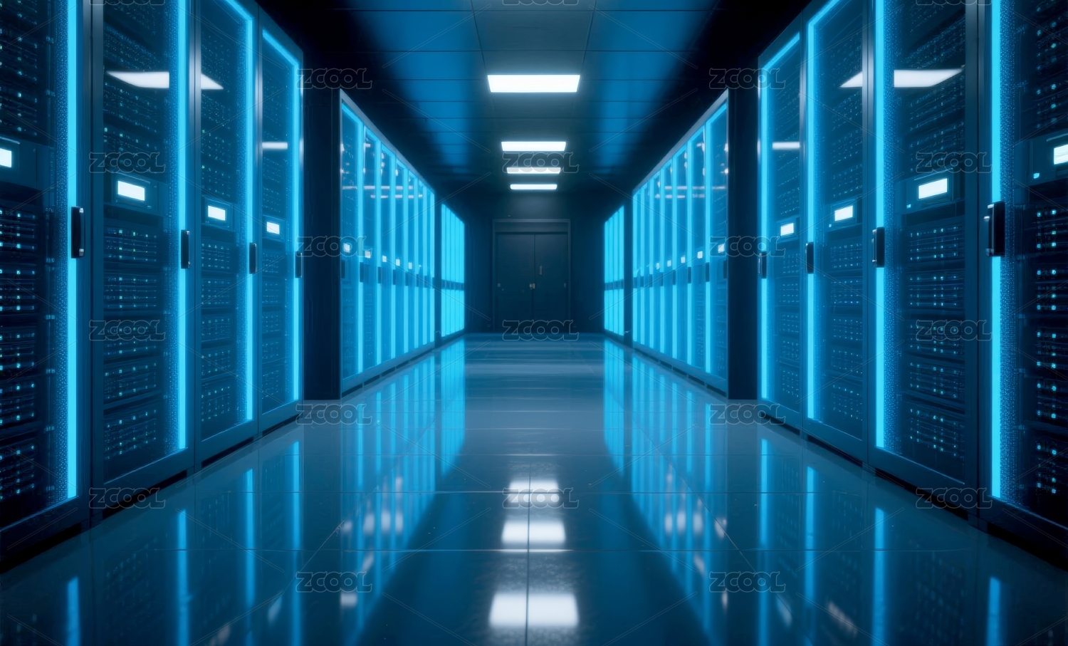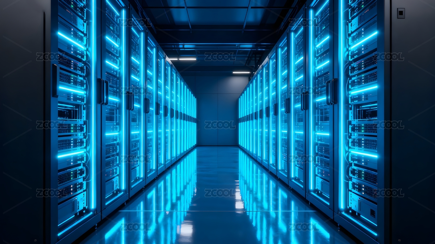 蓝色灯光服务器机房长廊