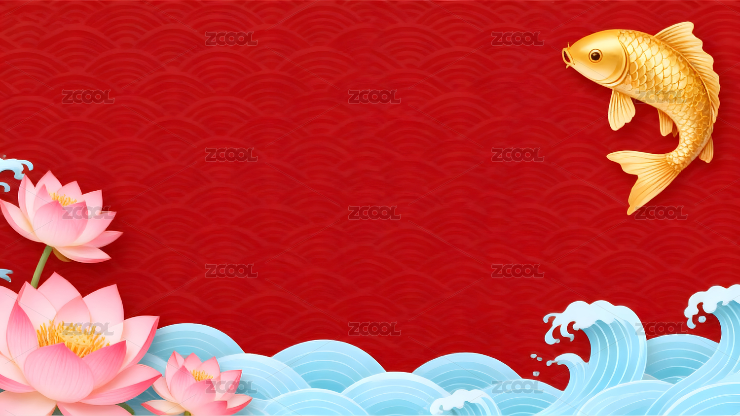 中国风新年剪纸锦鲤与灯笼云纹背景