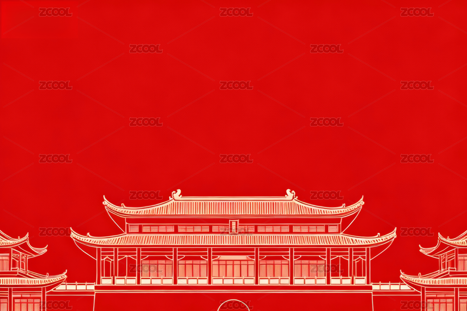 红色, 对称, 建筑, 屋顶, 传统, 宫殿, 中国风, 文化, 门楼, 飞檐