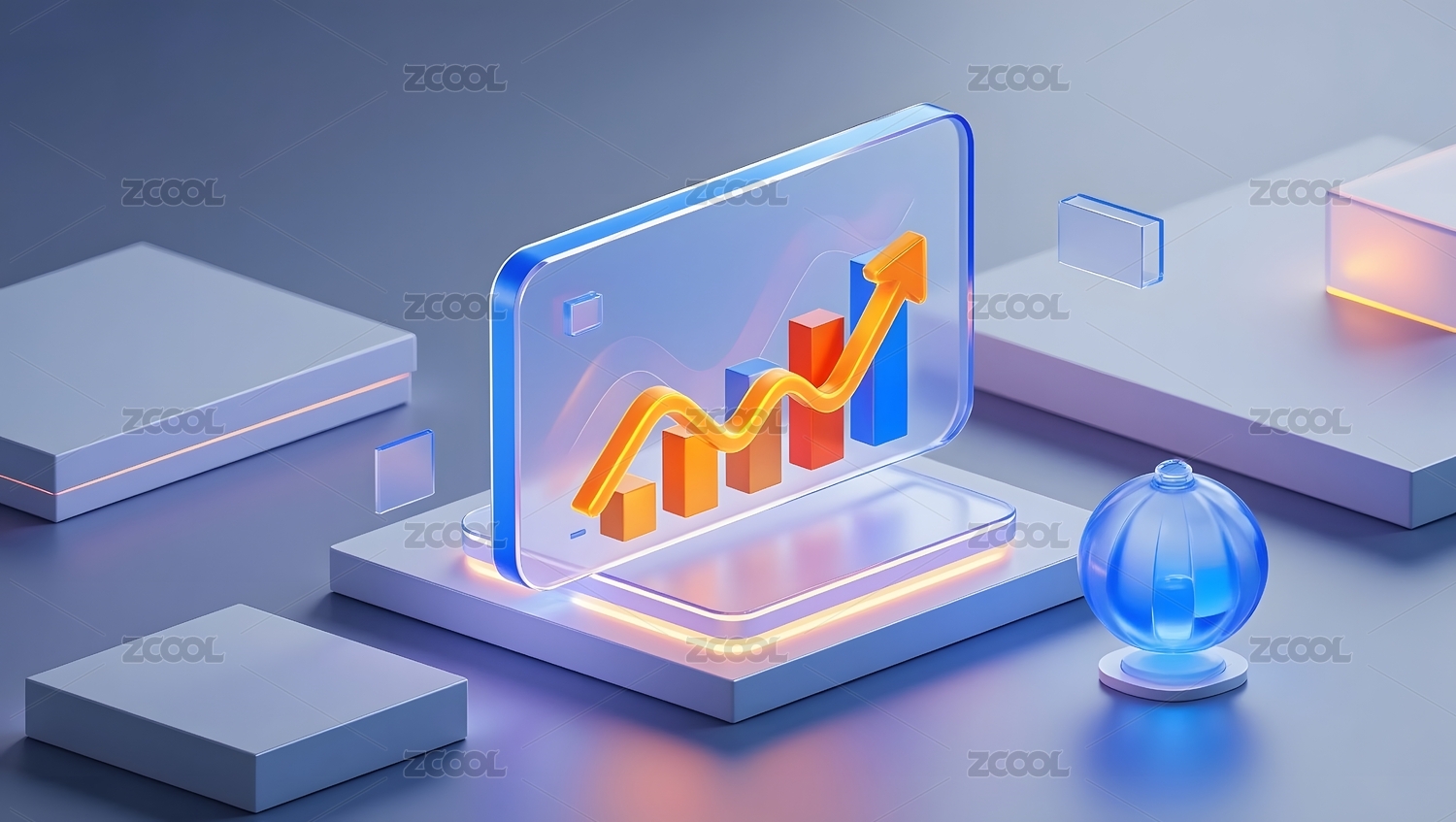 紫蓝色几何金融经济柱状图插画背景壁纸