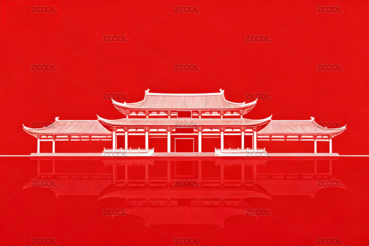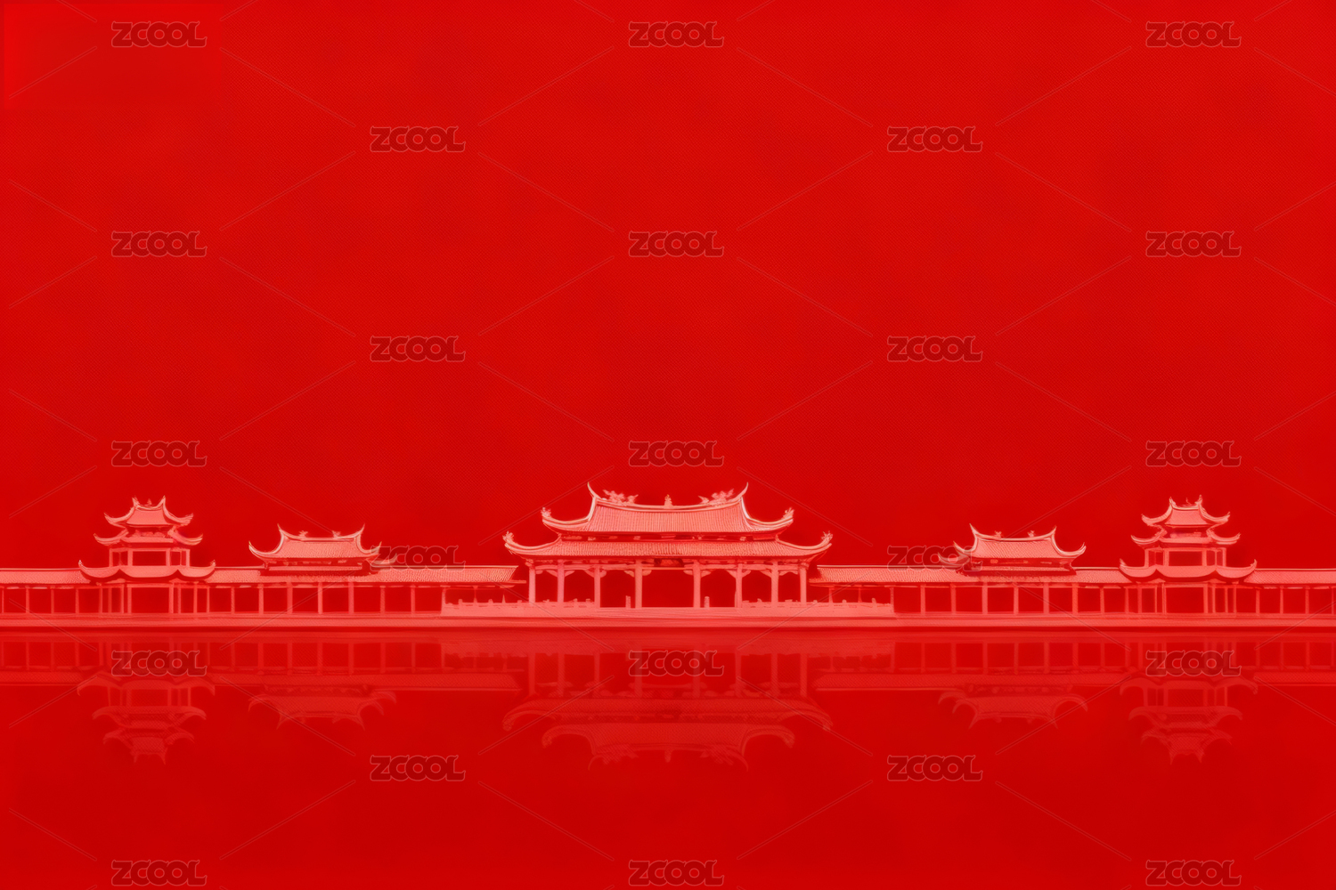 红色, 剪影, 建筑, 传统, 屋顶, 宫殿, 中国风, 历史, 文化, 古迹