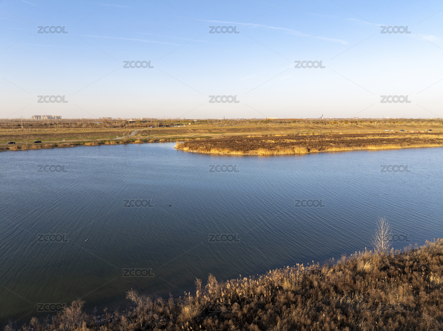 河北省石家庄市滹沱河生态旅游区航拍图片