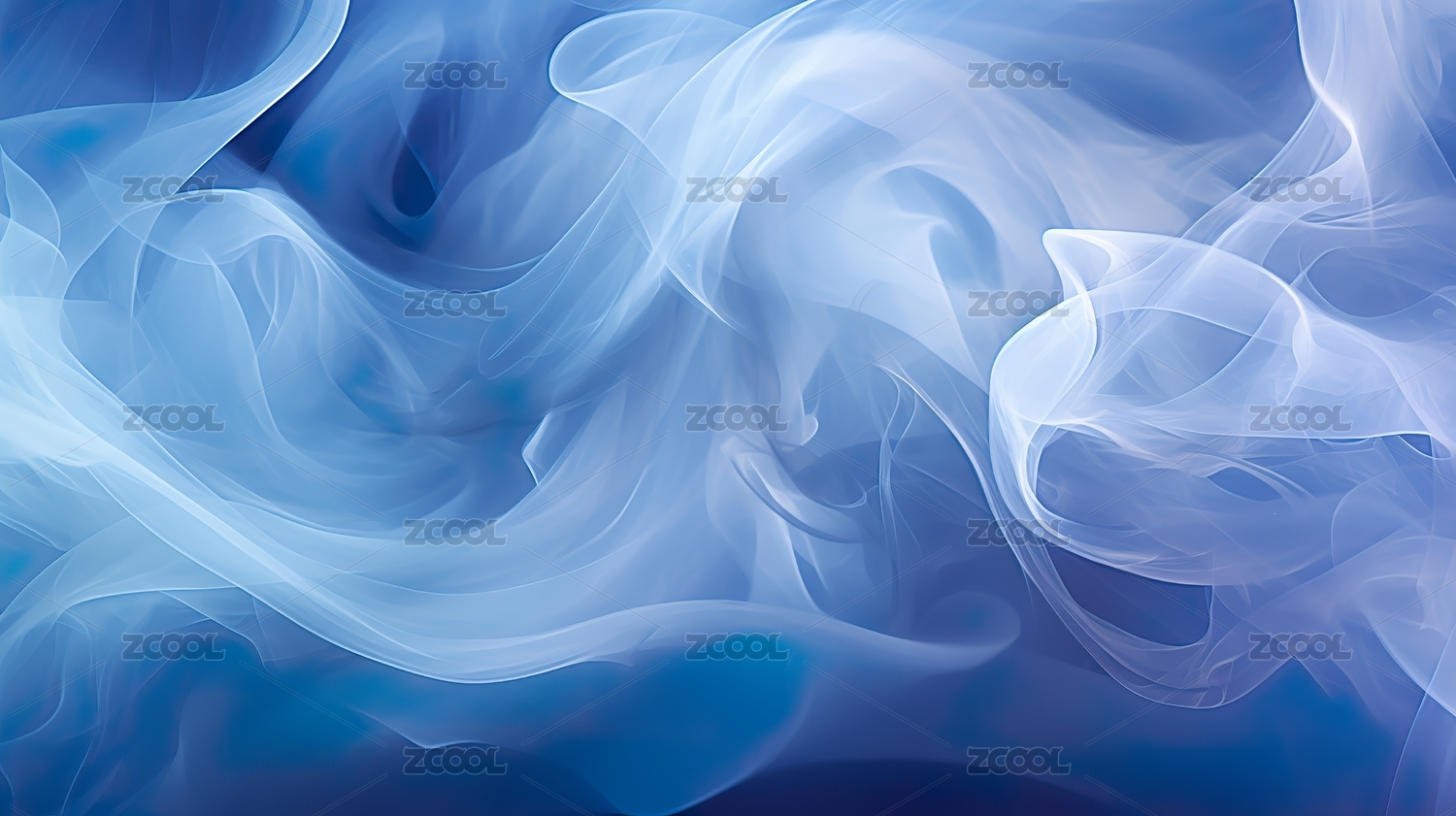 抽象的轻柔烟雾在蓝色的背景中飘动