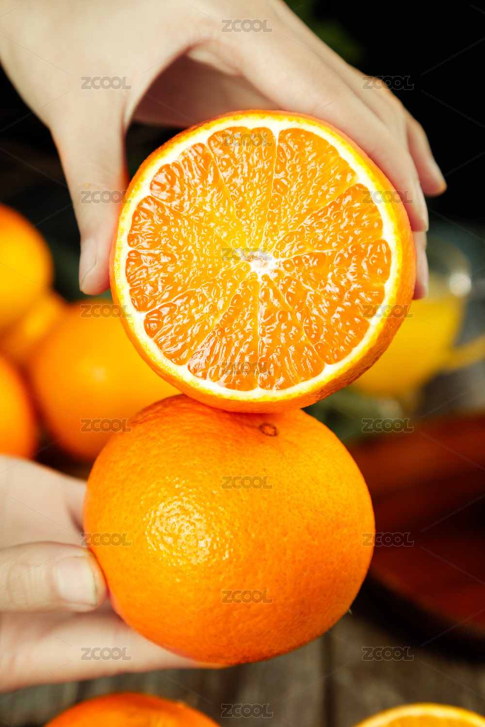手上拿着半边爱媛38号和一个完整的果冻橙