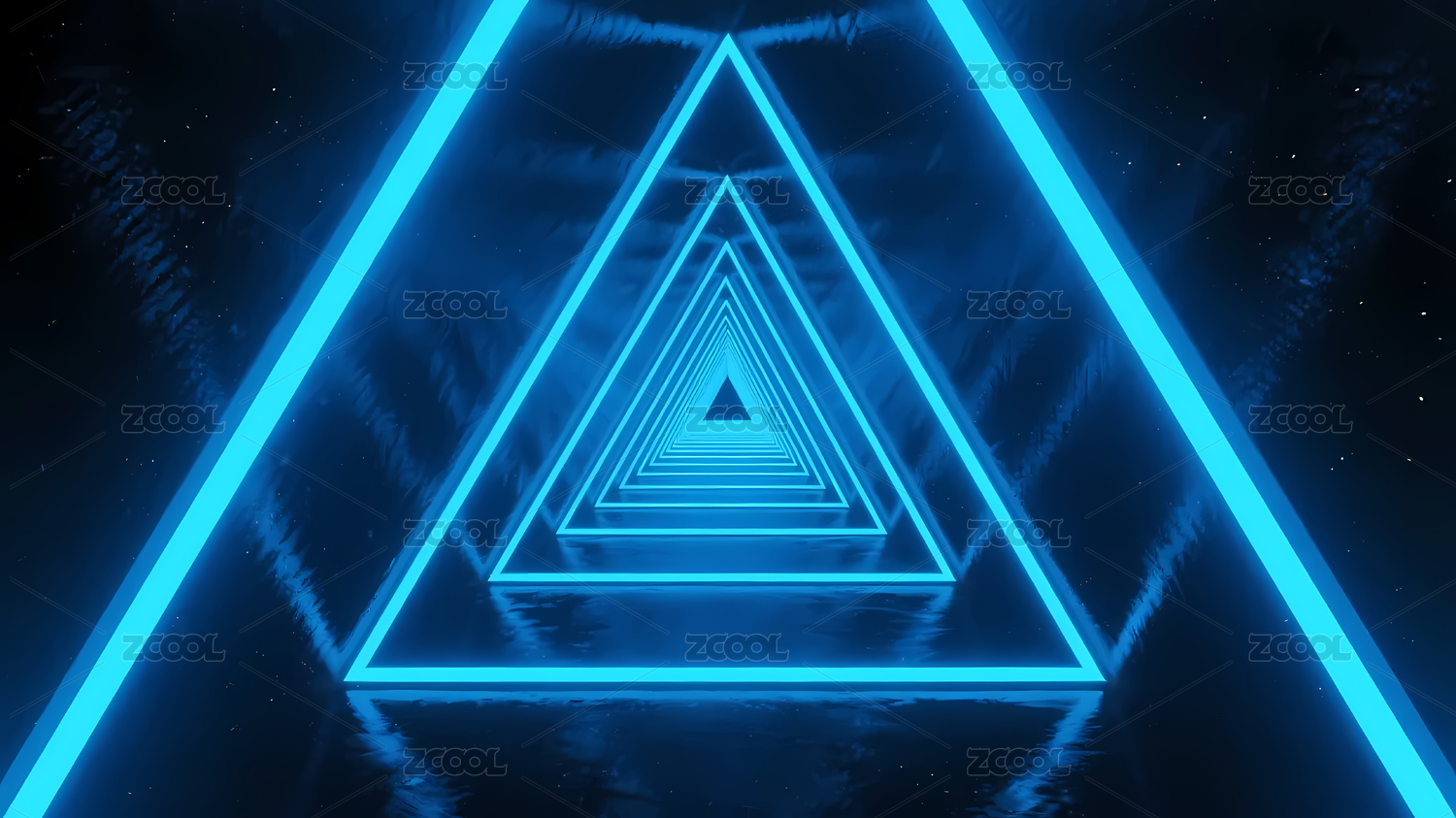 蓝色,三角形,线条,科技,未来,霓虹,光效,隧道,深黑,空间