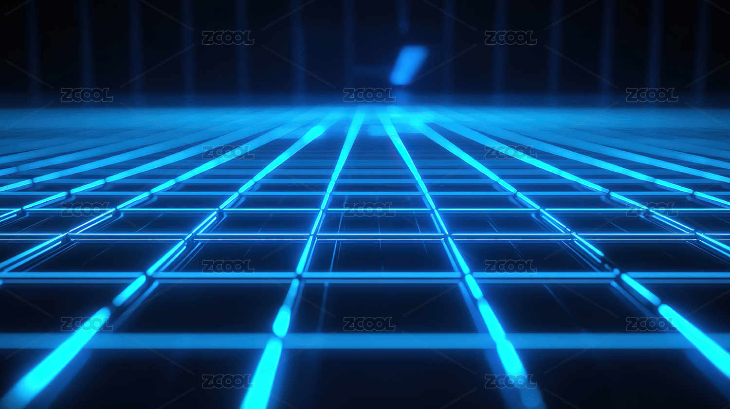 蓝色,科技,空间,未来,黑色,发光,深邃,方块,地面,氛围