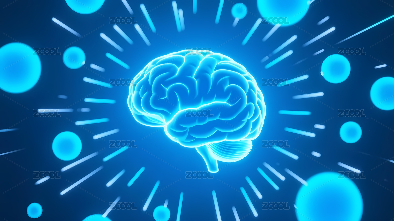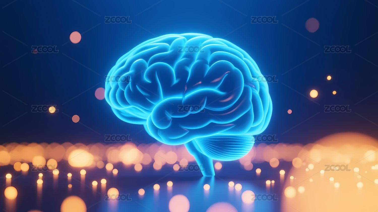 发光蓝色大脑与橙色光点