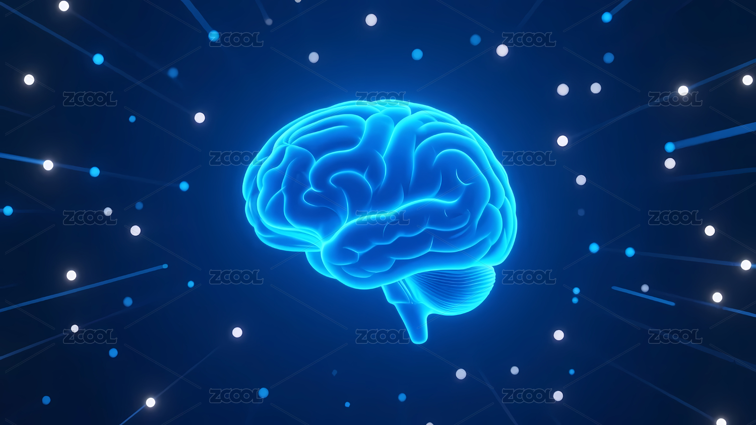 蓝色发光大脑与科技光点
