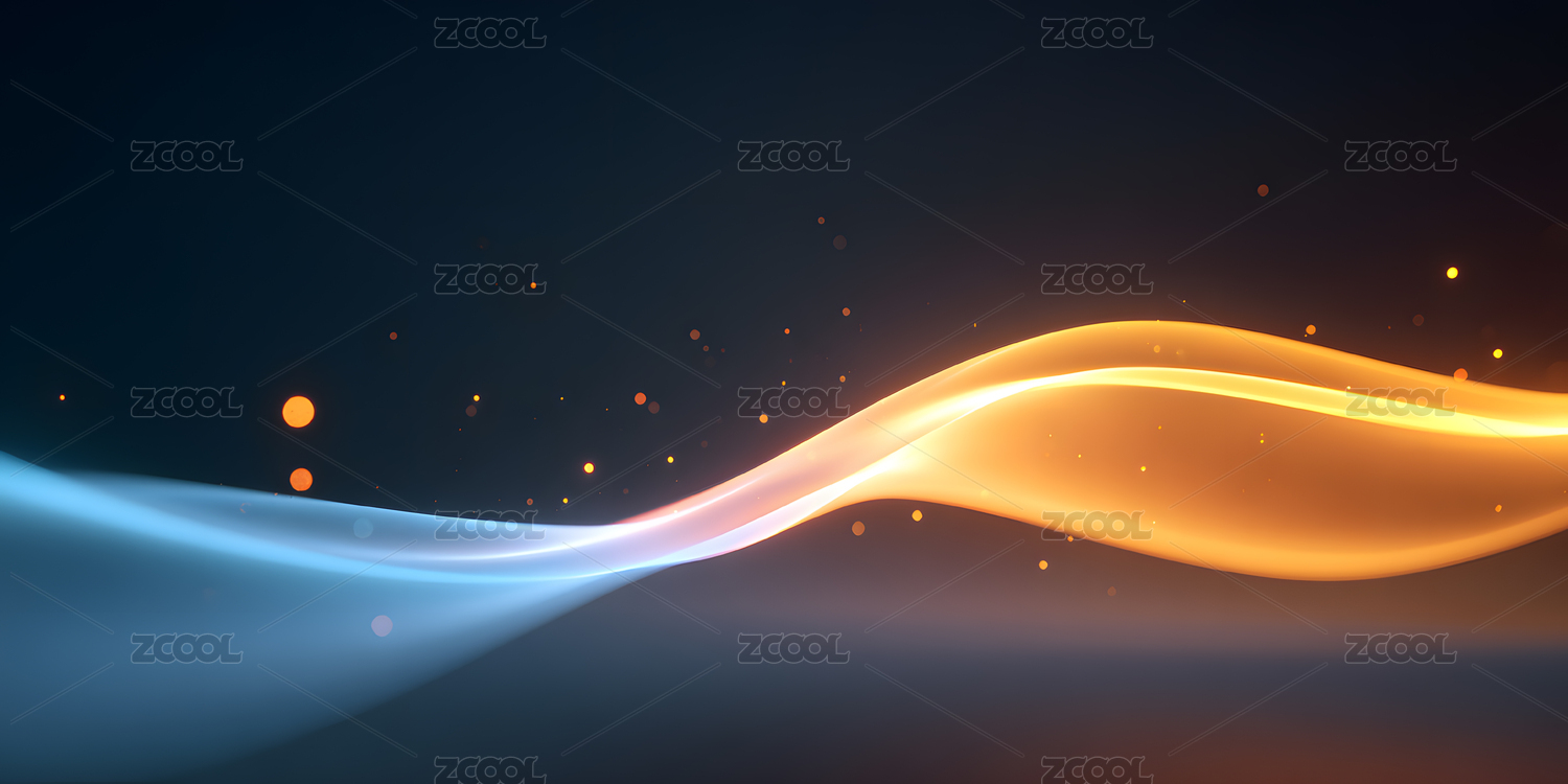 蓝色和橙色的光带在深色背景中流动