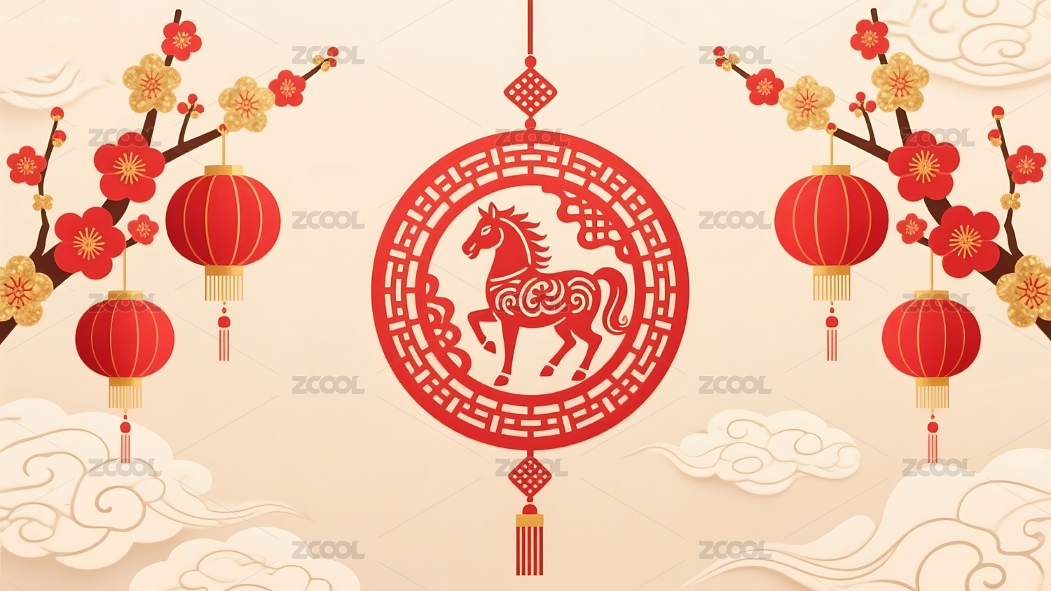 装饰,背景,马,灯笼,云,花,红色,金色,图案,传统