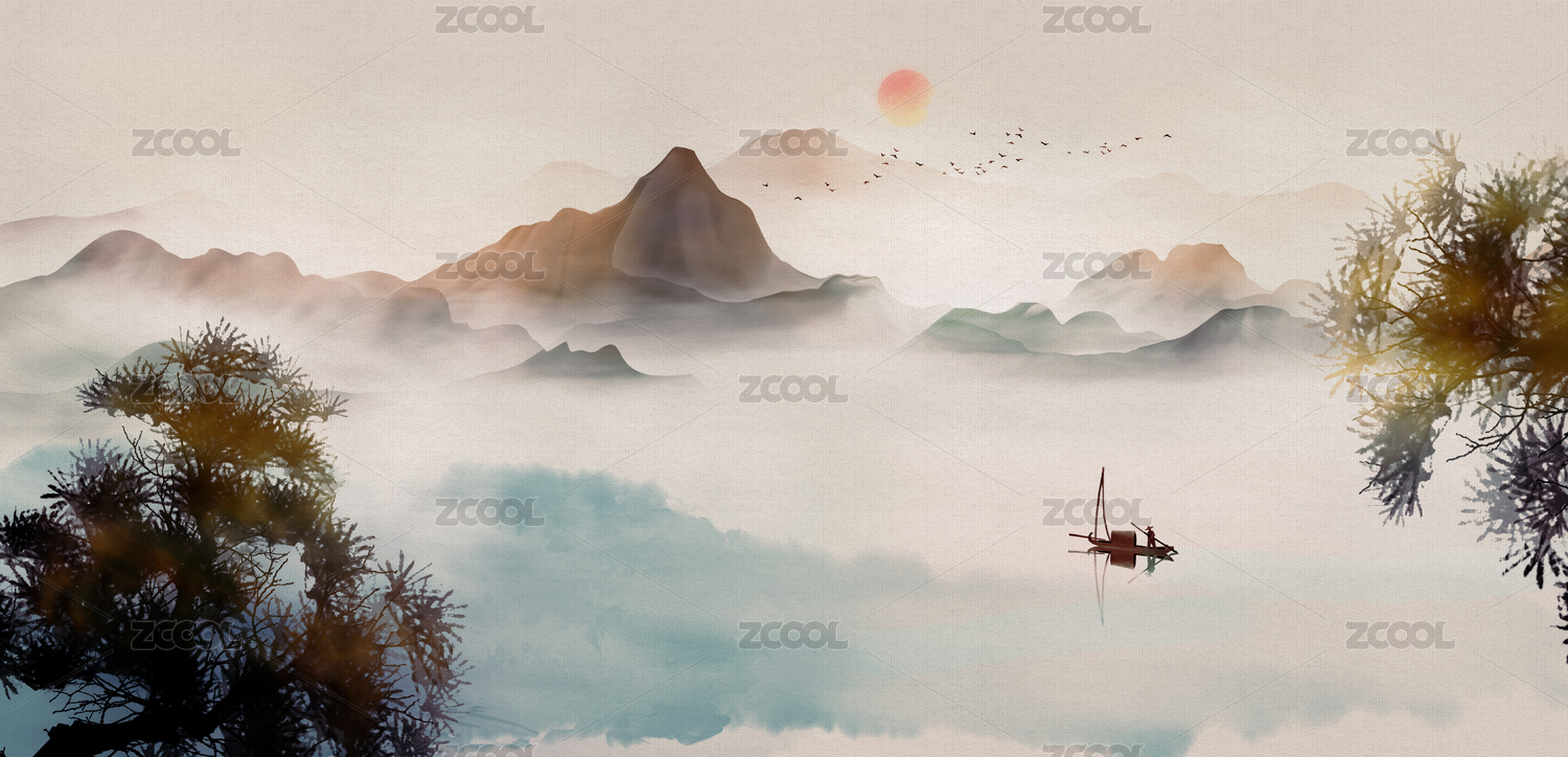抽象竹鸟装饰画 新中式竹子画 朦胧竹子 适用于家装,酒店,文化场所等,用于做:背景墙、隔断、移门,屏风、玄关。高清分层图可以用UV打印。