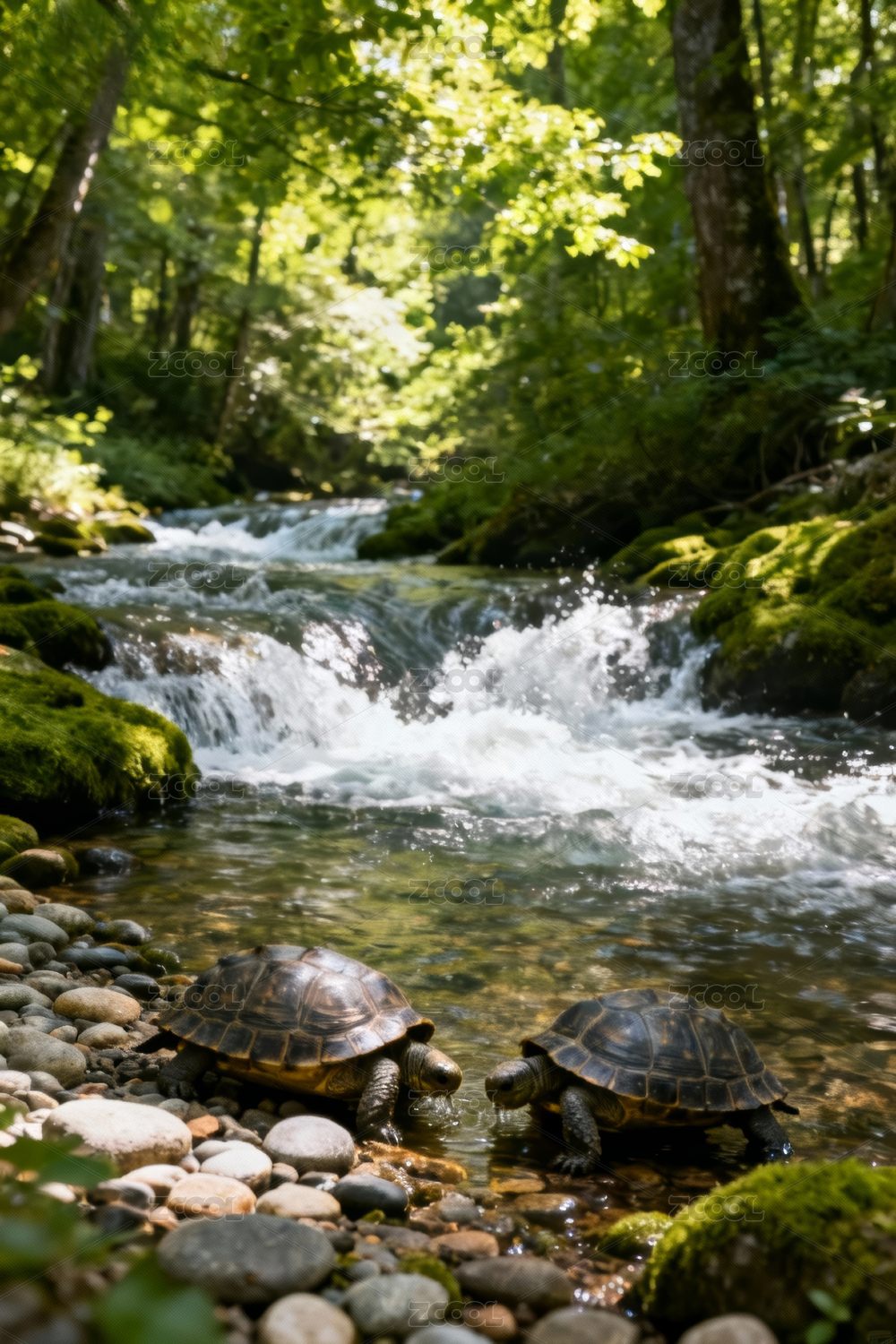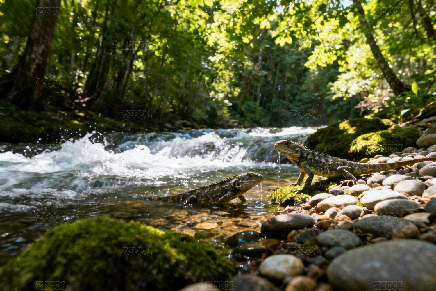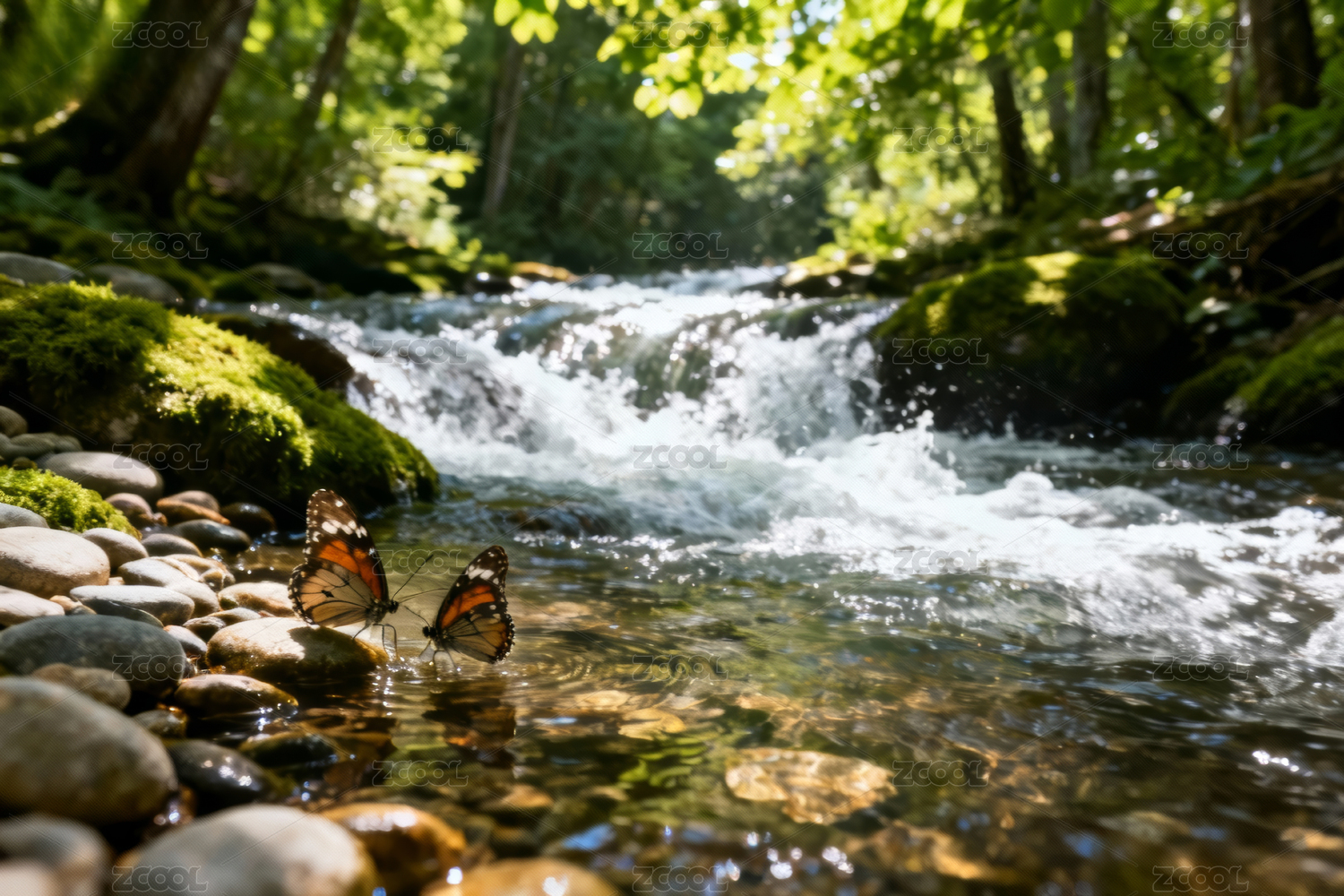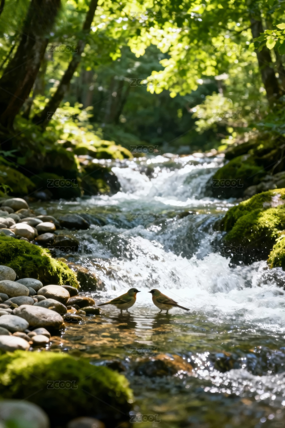 溪流, 森林, 水流, 石头, 自然, 清澈, 阳光, 树木, 绿叶, 光影