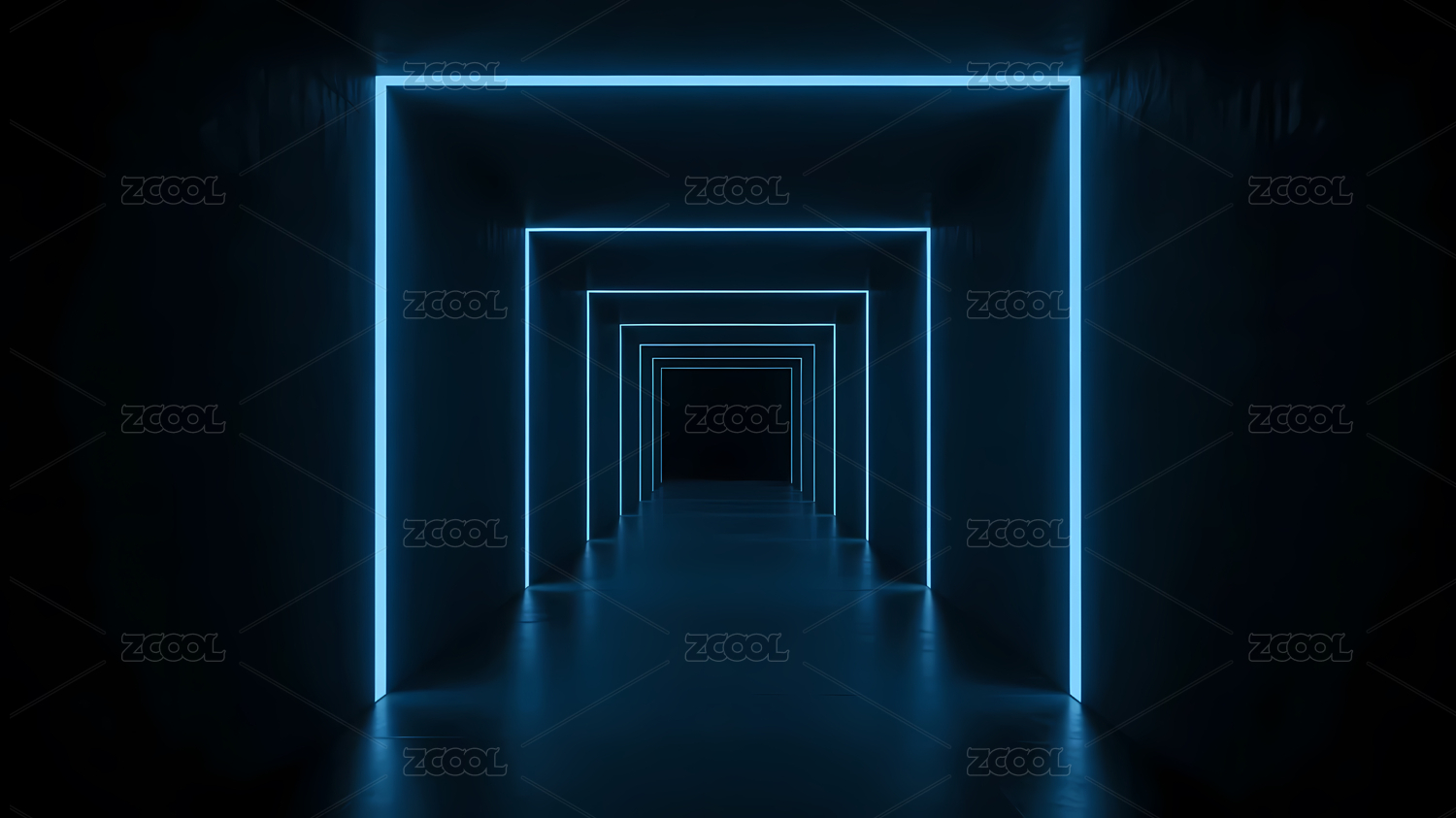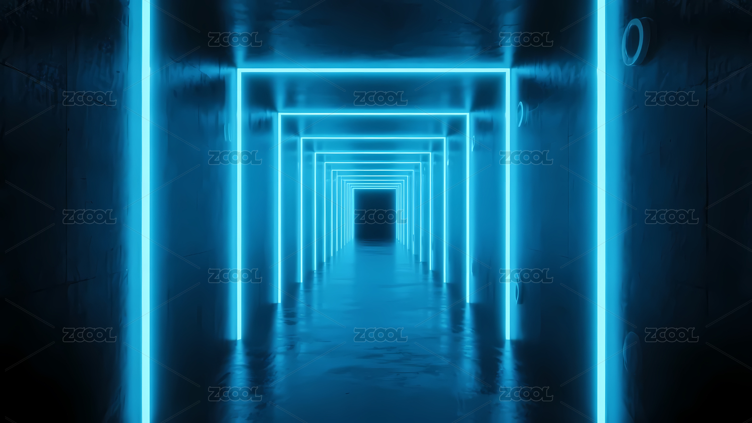 蓝色,科技,未来,神秘,走廊,灯光,深黑,明亮,延伸,空间
