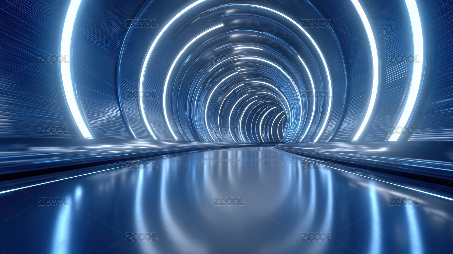 未来主义蓝色霓虹灯隧道