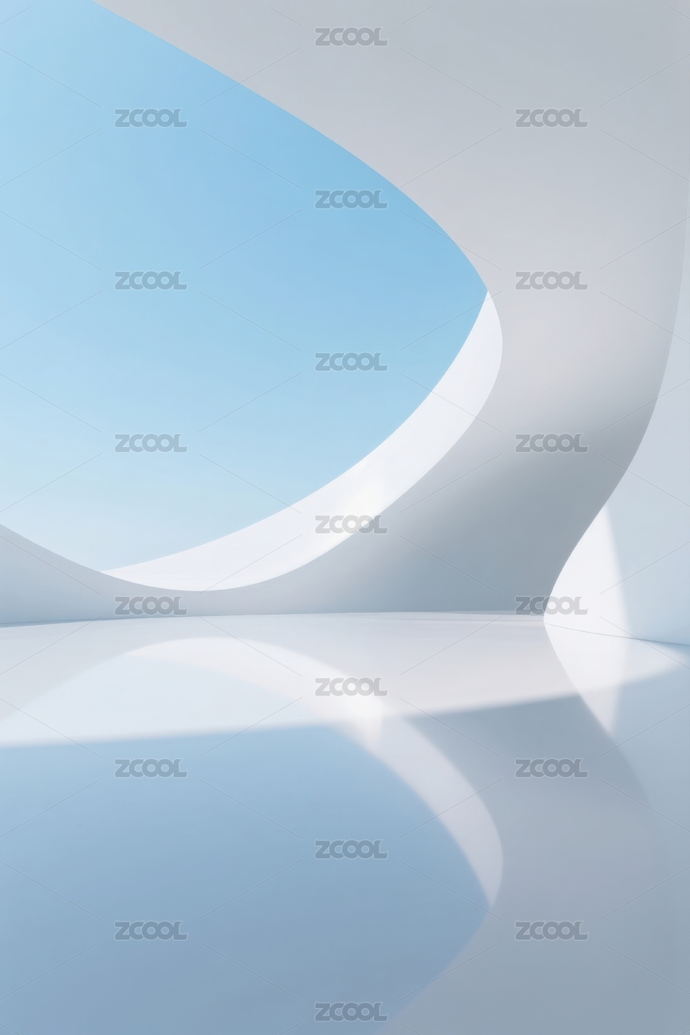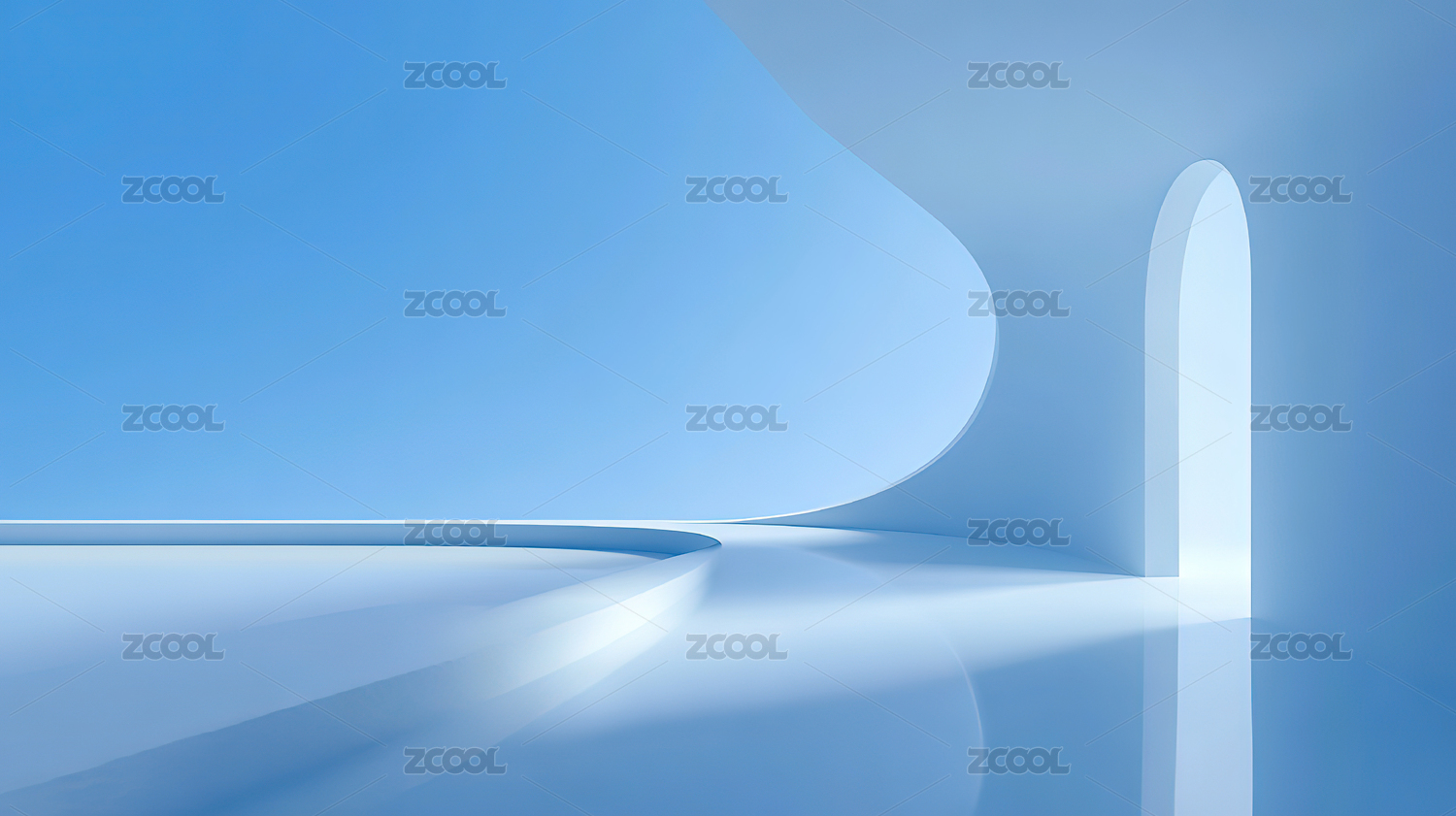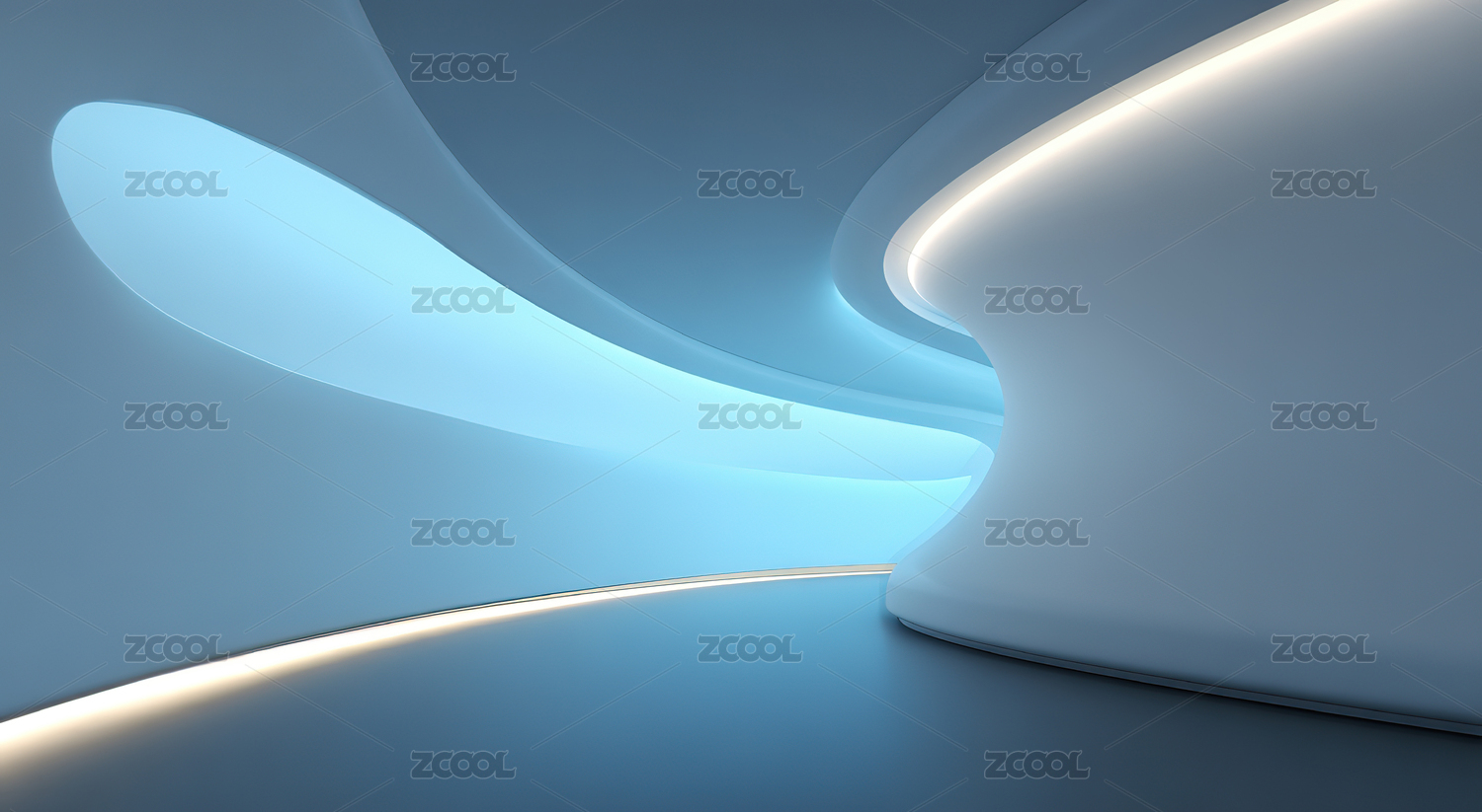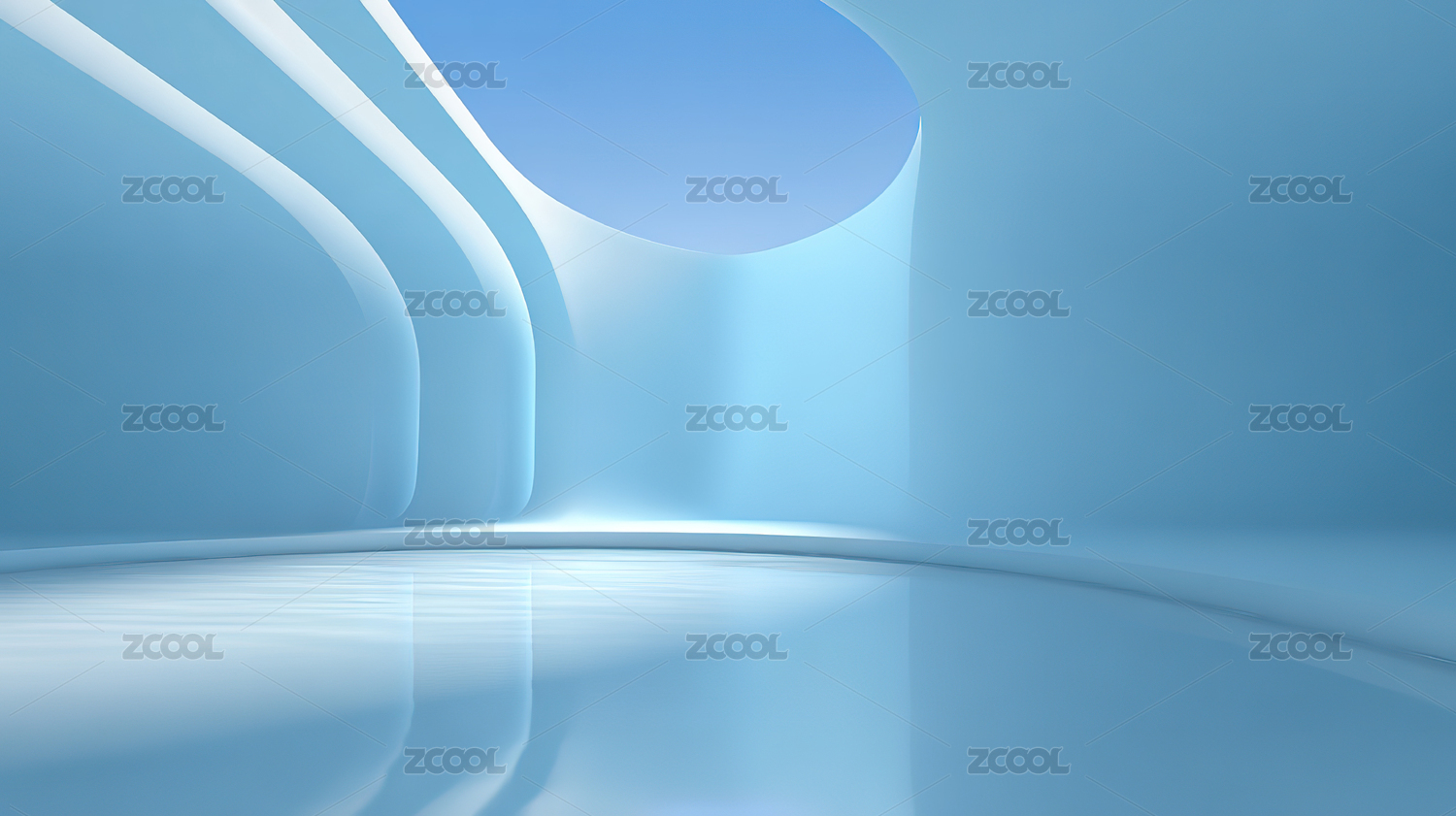 极简宽阔的浅灰蓝色未来商务空间简洁展台
