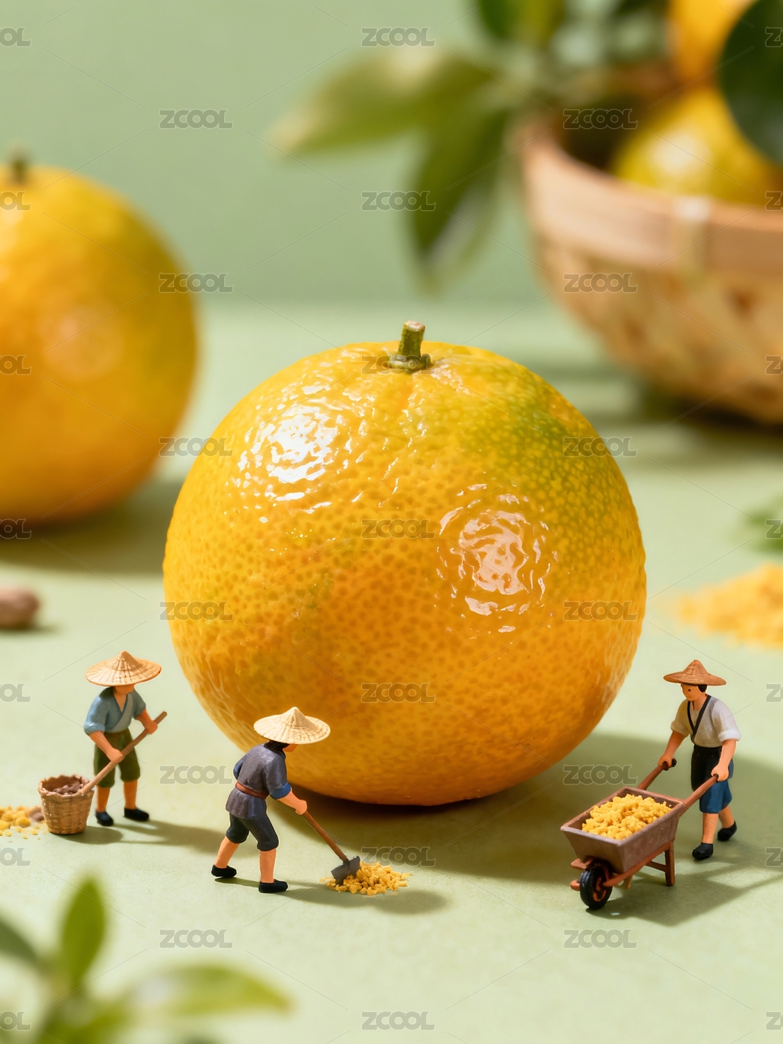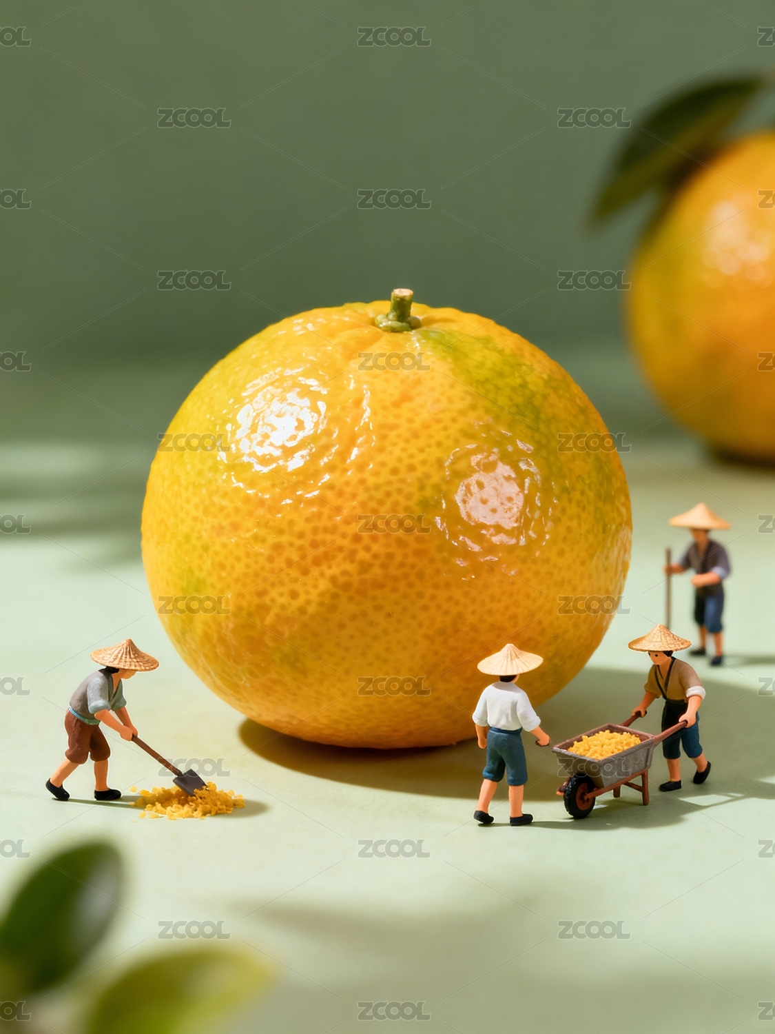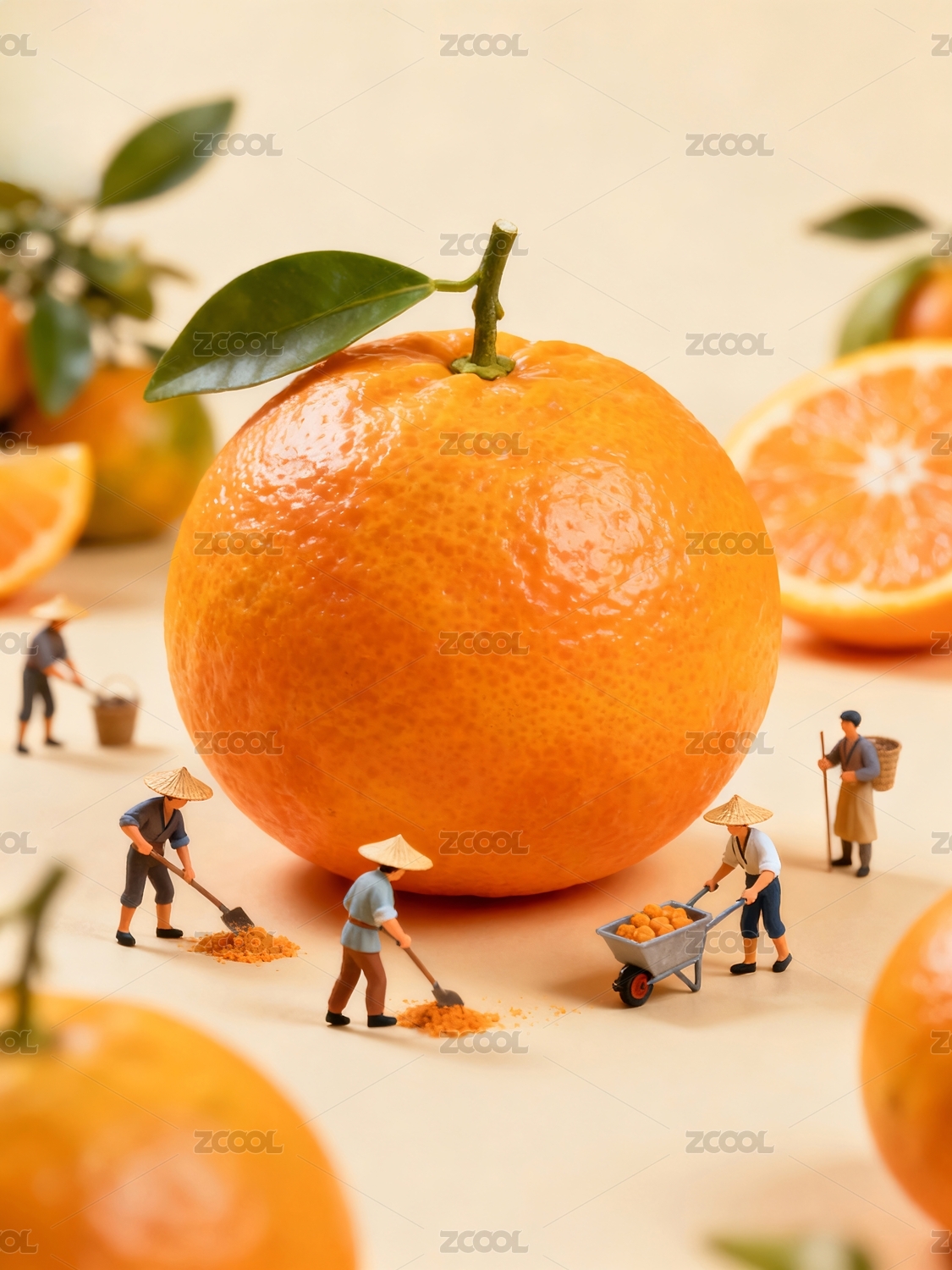 橙子周围劳作的小人