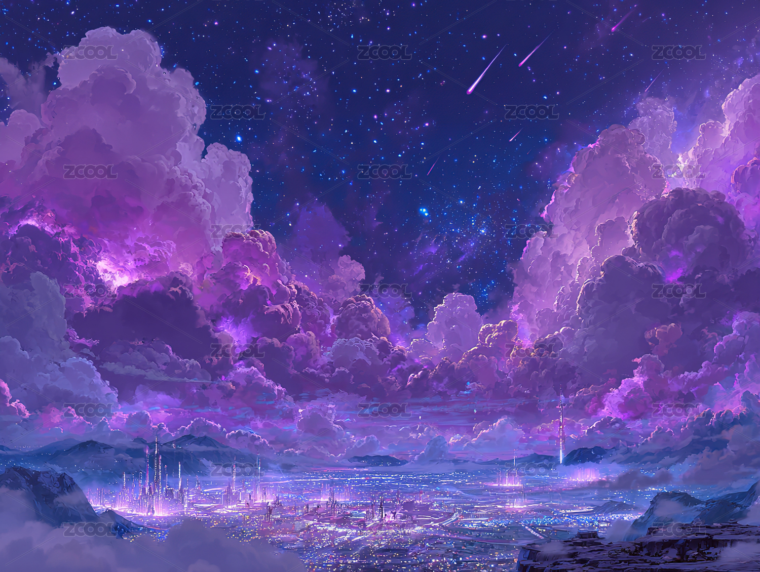 天空,云彩,光影,远景,宁静,广阔,星空,夜空,紫色,流星