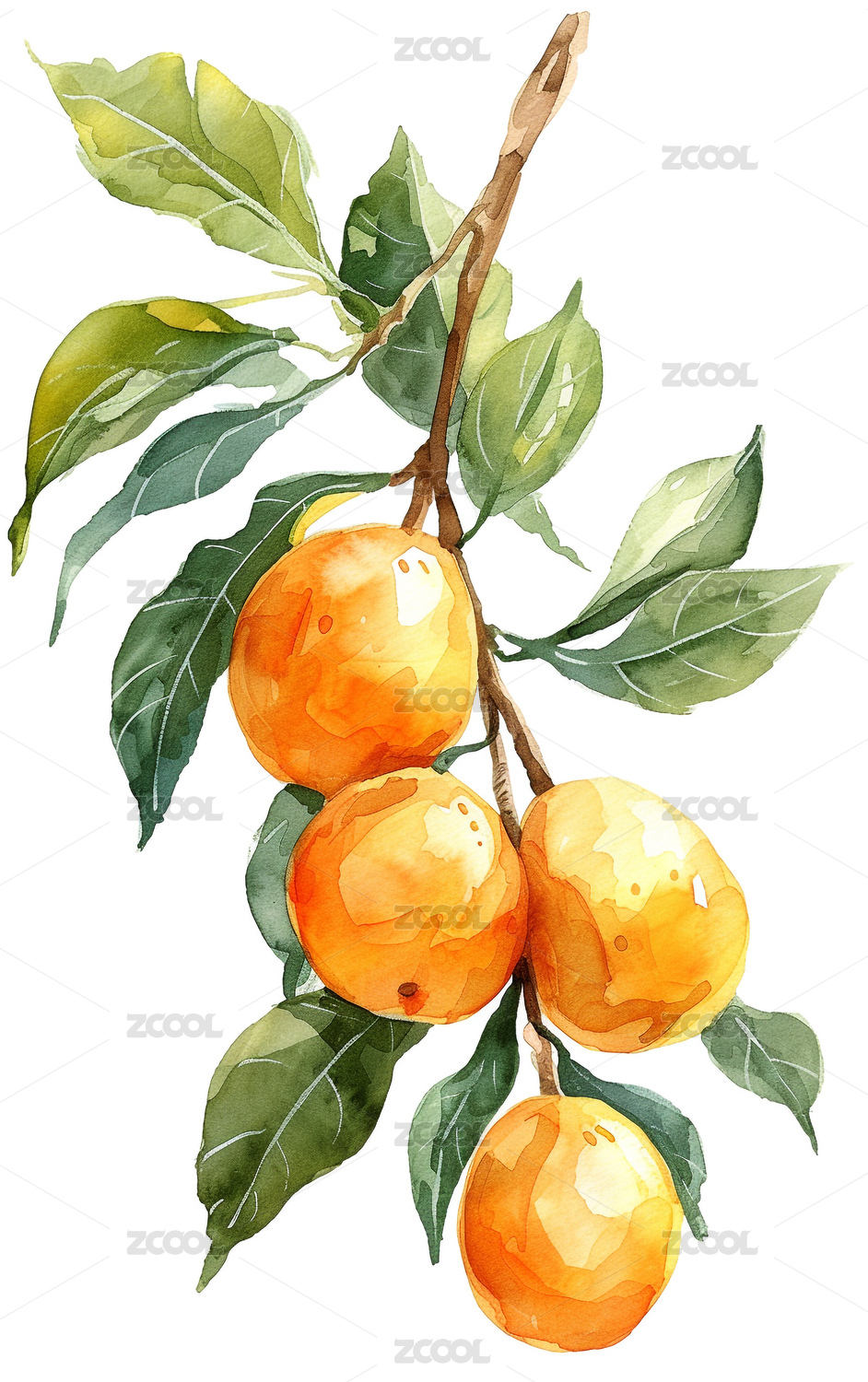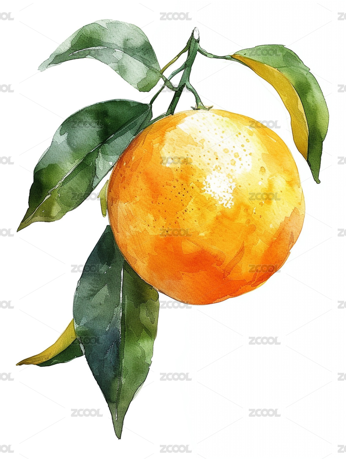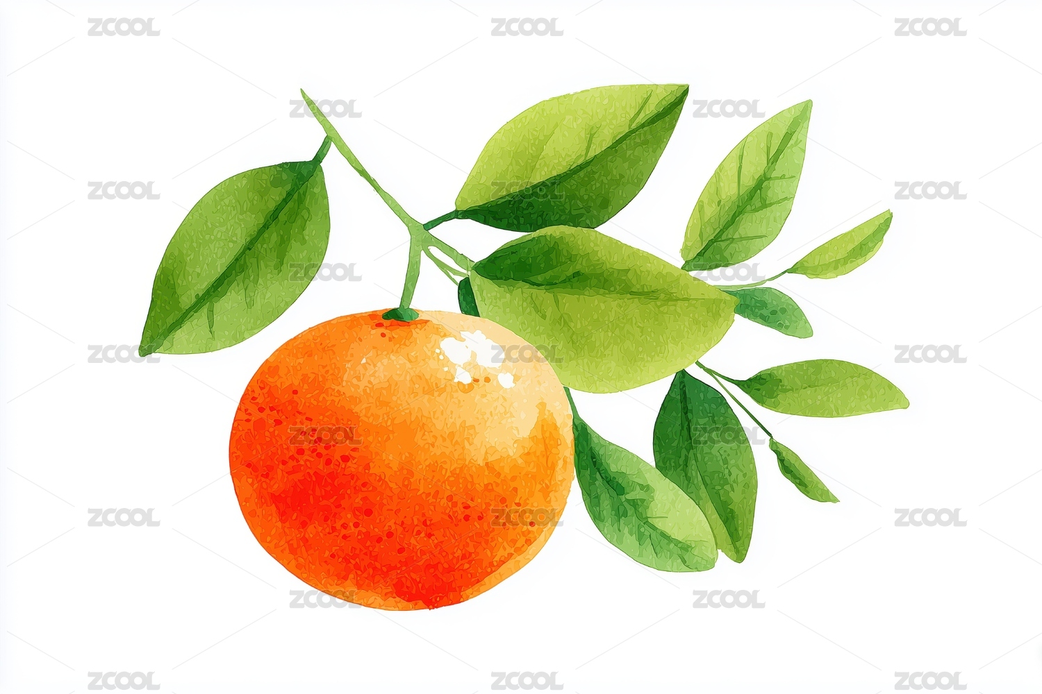 白背景带叶子的成熟的橘子手绘扁平水彩插画