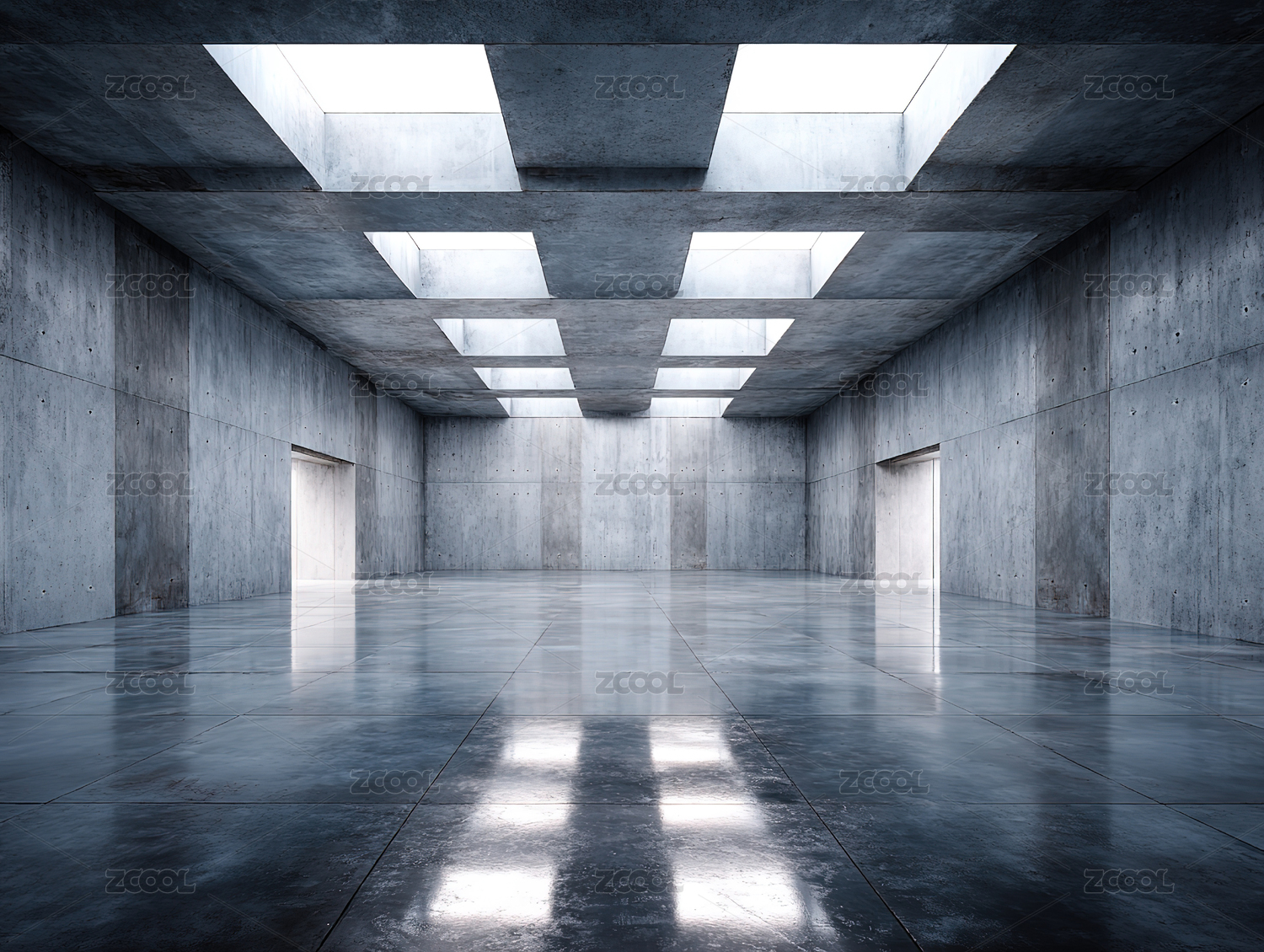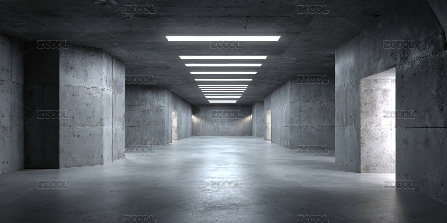 3D渲染混凝土水泥建筑室内霓虹空间背景