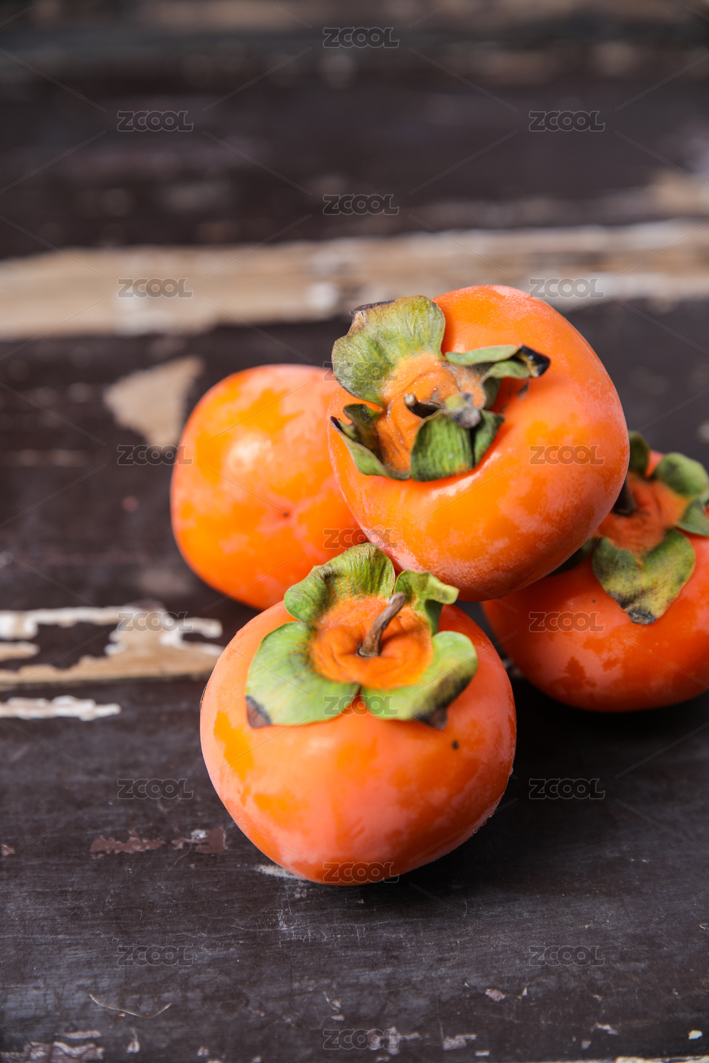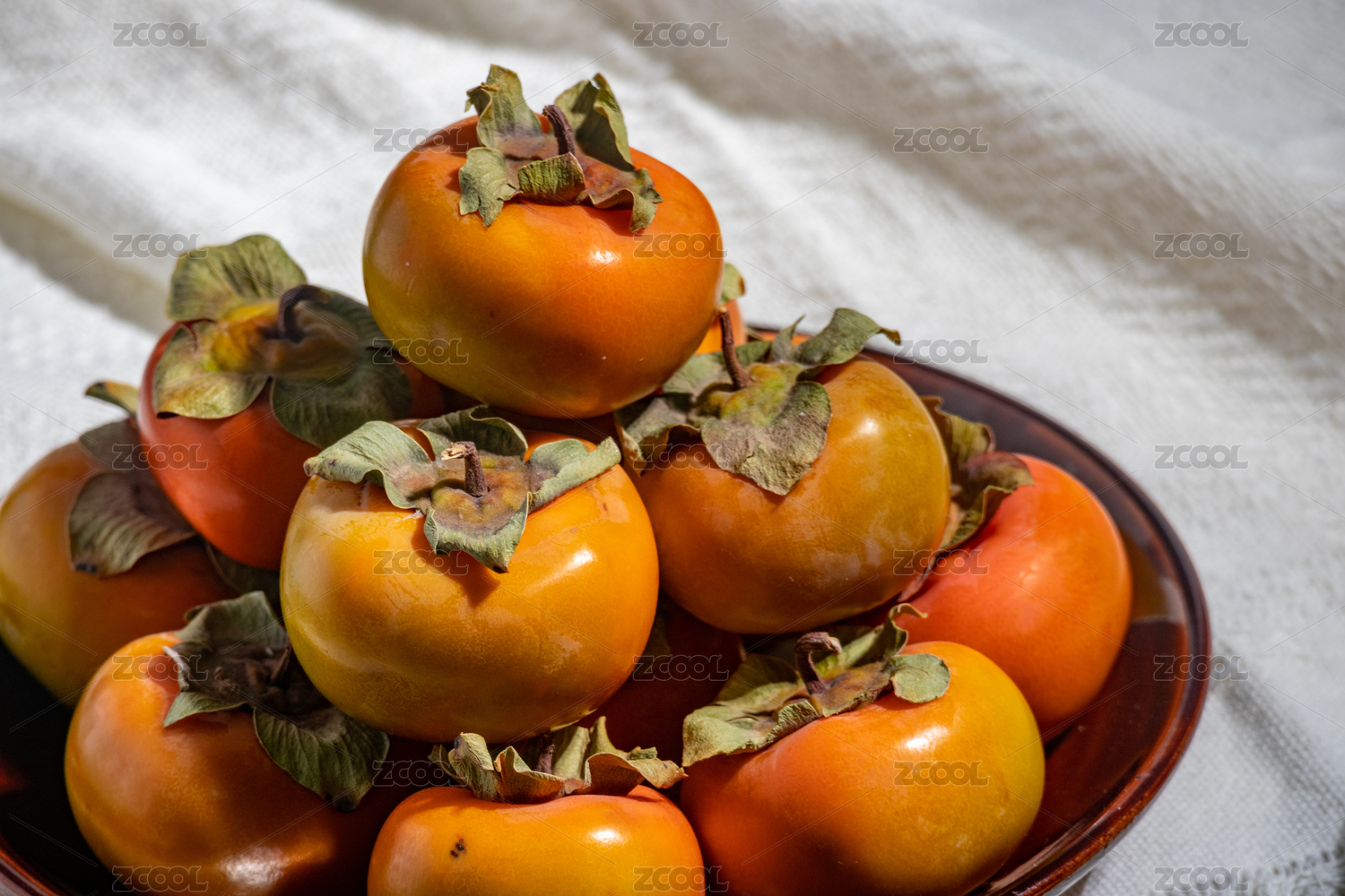 秋季新鲜采摘摆盘的时令水果红柿子静物美食