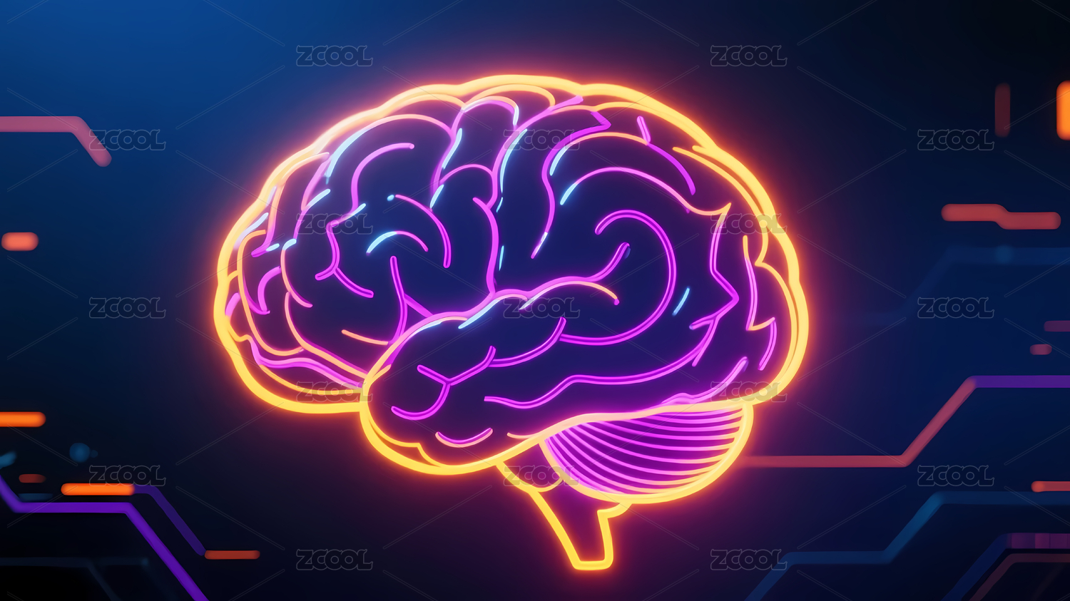 粉蓝渐变的脑霓虹灯