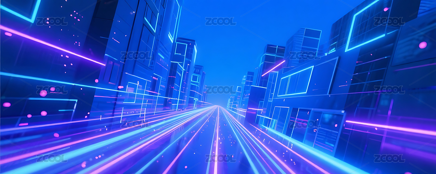 蓝紫色渐变科技城光轨背景