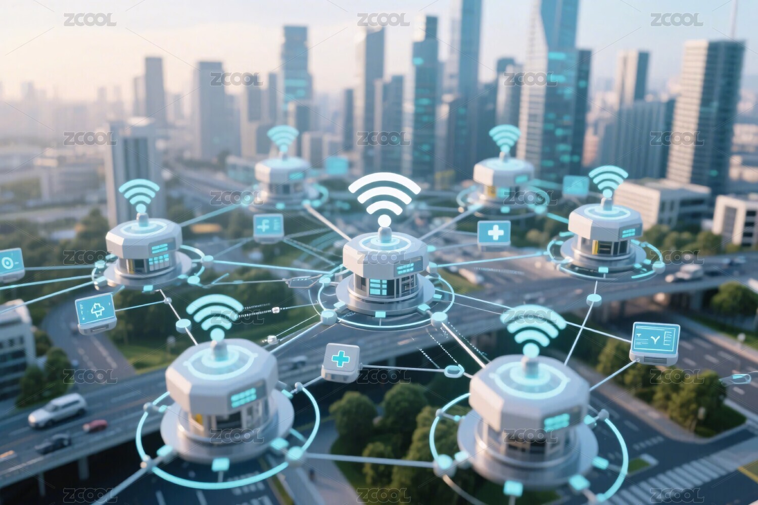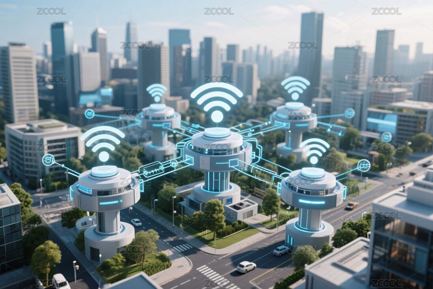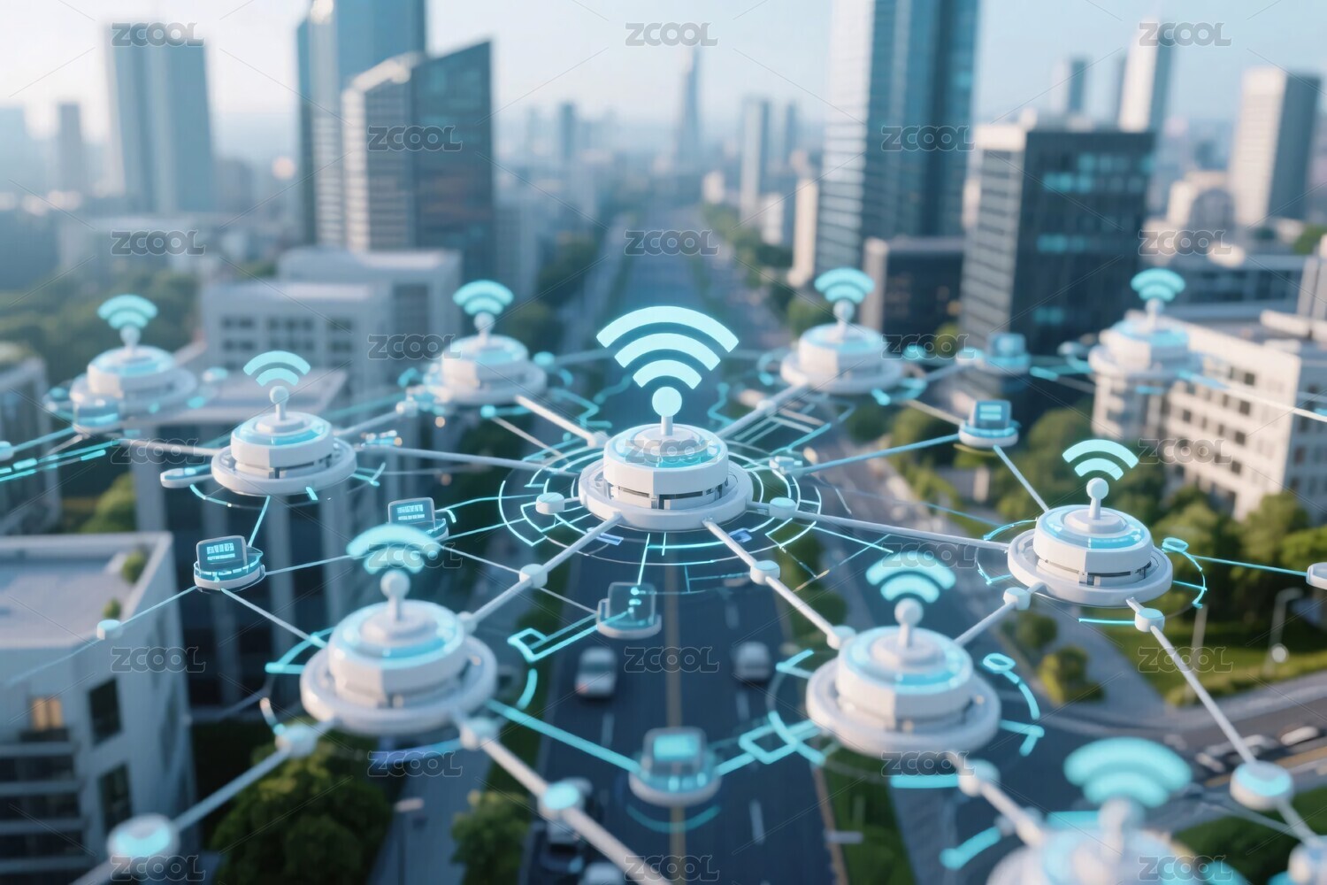 智能建筑,城市,网络,传感器,无线信号,智慧城市,智能系统,未来建筑,数字网络,城市景观