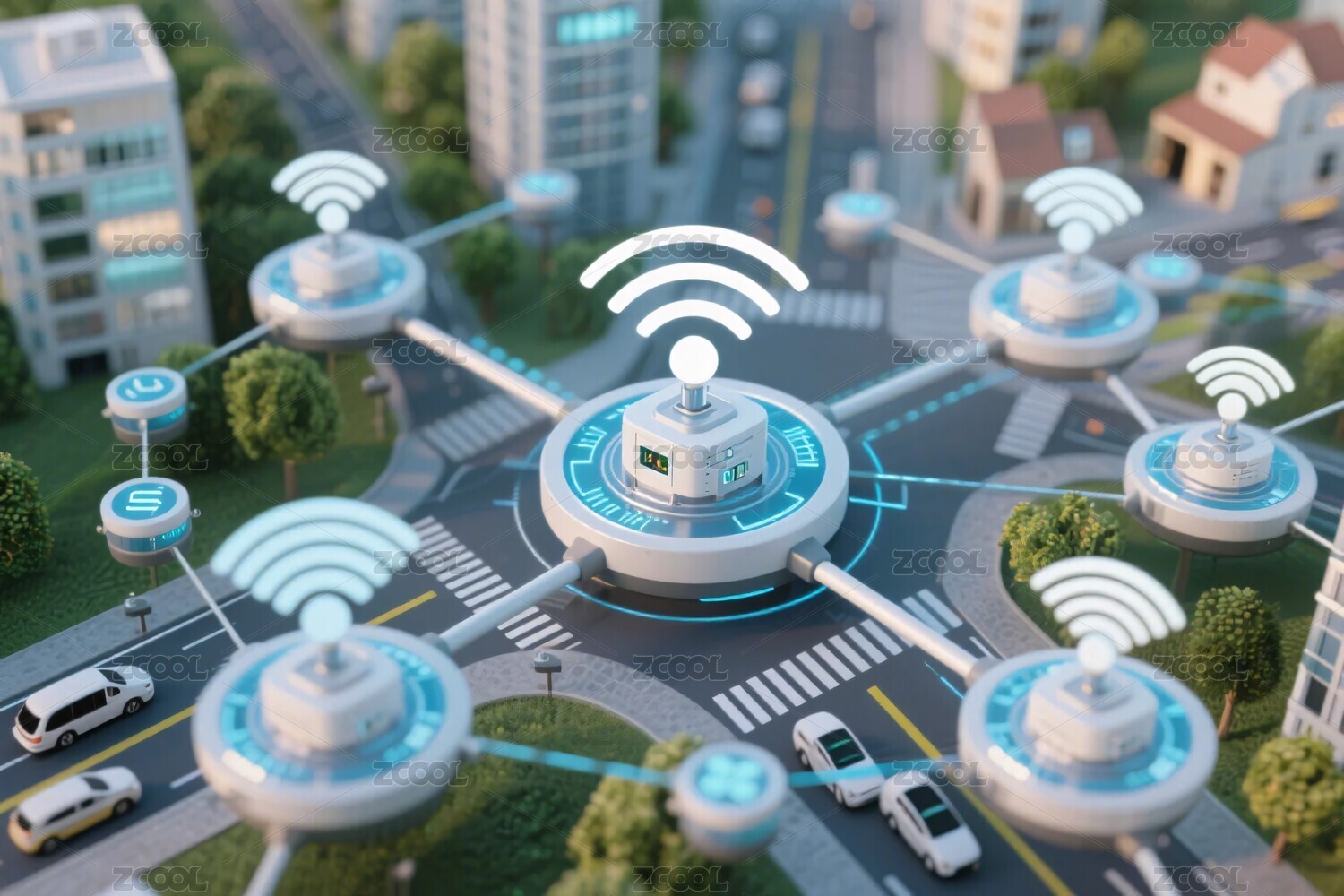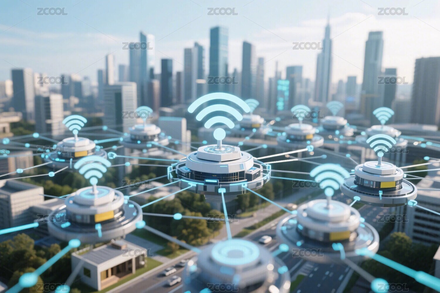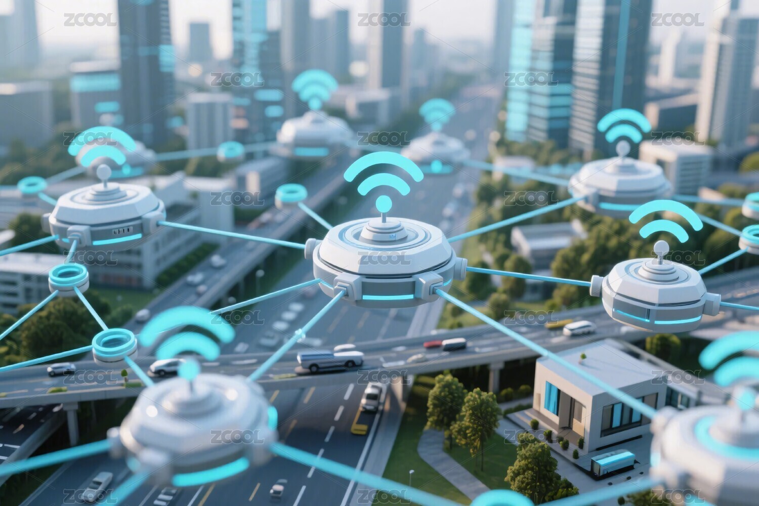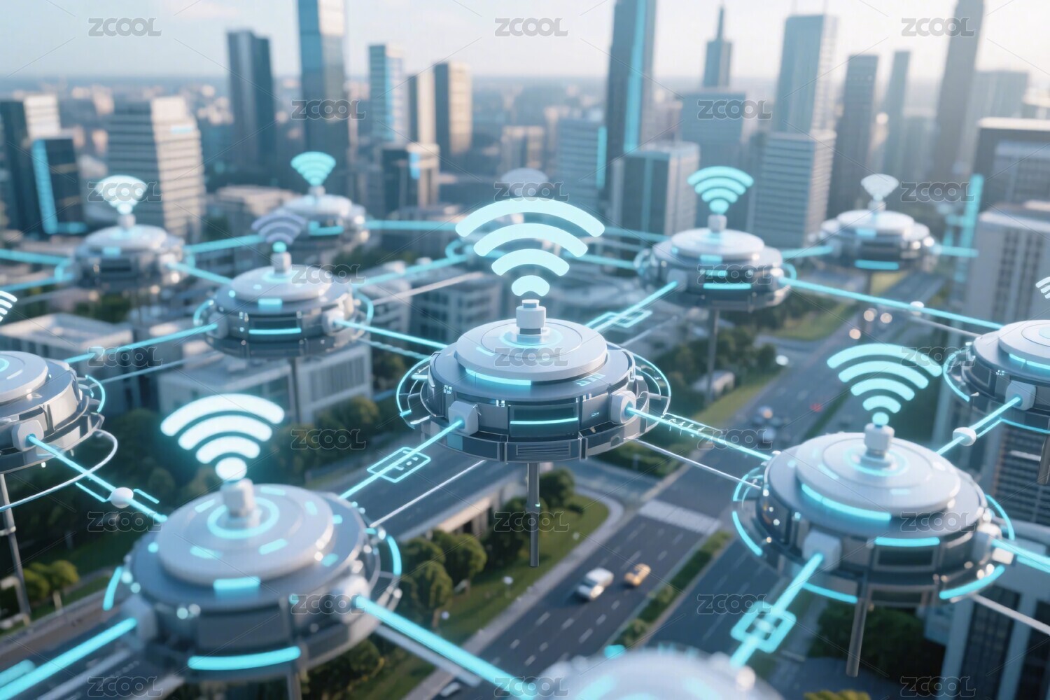 智能建筑,城市,网络,传感器,无线信号,智慧城市,智能系统,未来建筑,数字网络,城市景观
