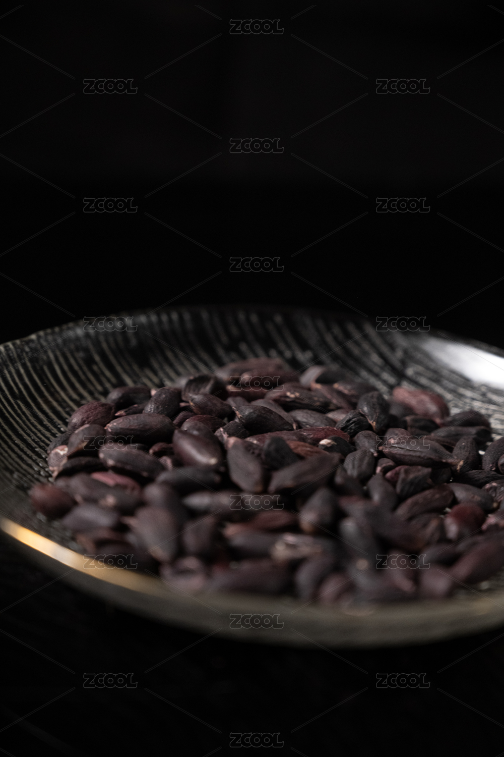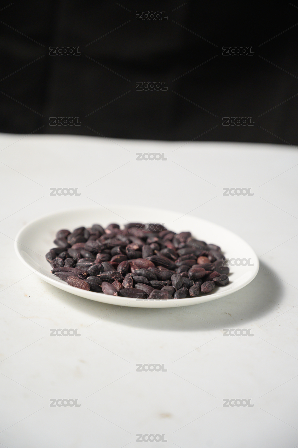 桌面上的盘子里的美味可口的黑皱皮花生