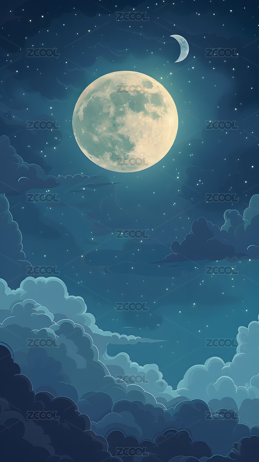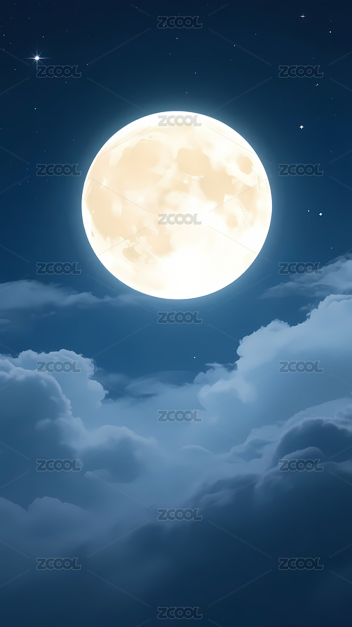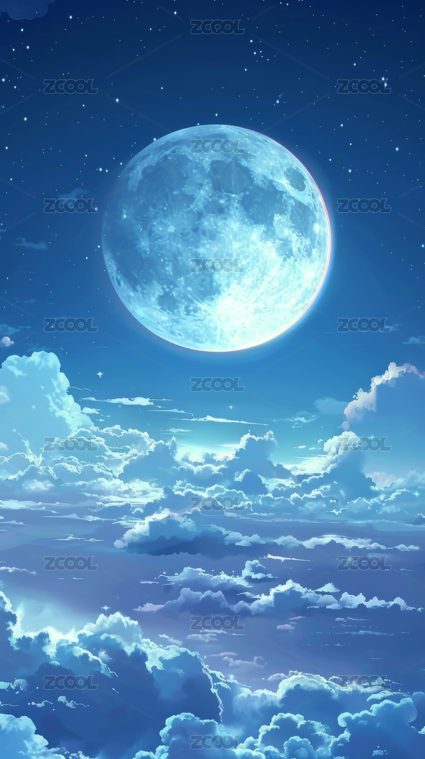 自然,宁静,深蓝,白色,神秘,云朵,月亮,夜空,淡黄,美景