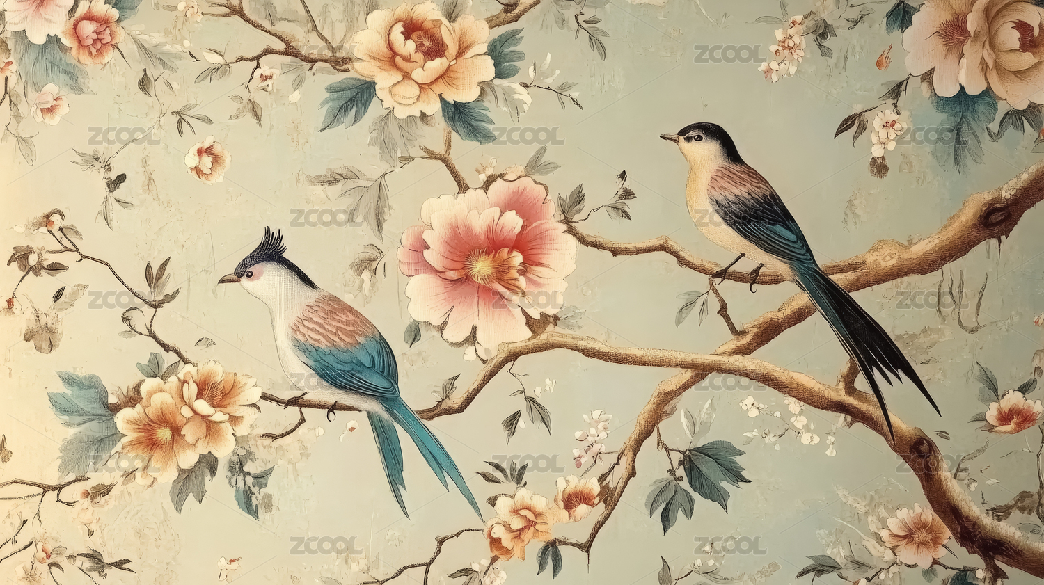 牡丹,树枝,中式,插画,矢量,画面元素,主题,自然,传统,装饰