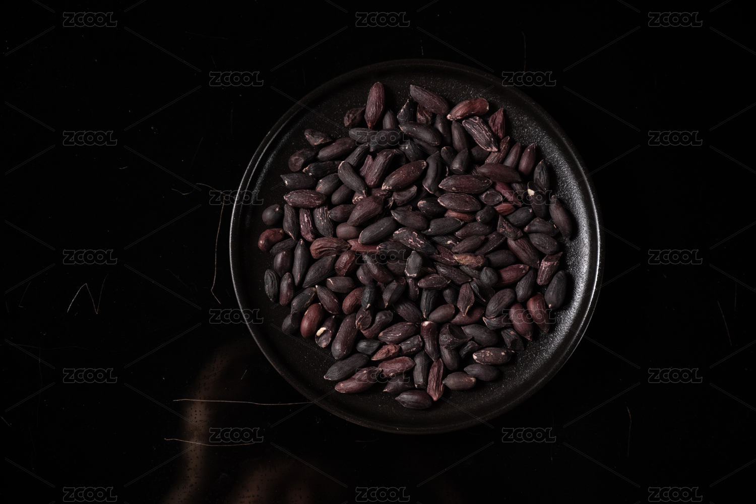 桌面上的盘子里的美味可口的黑皱皮花生