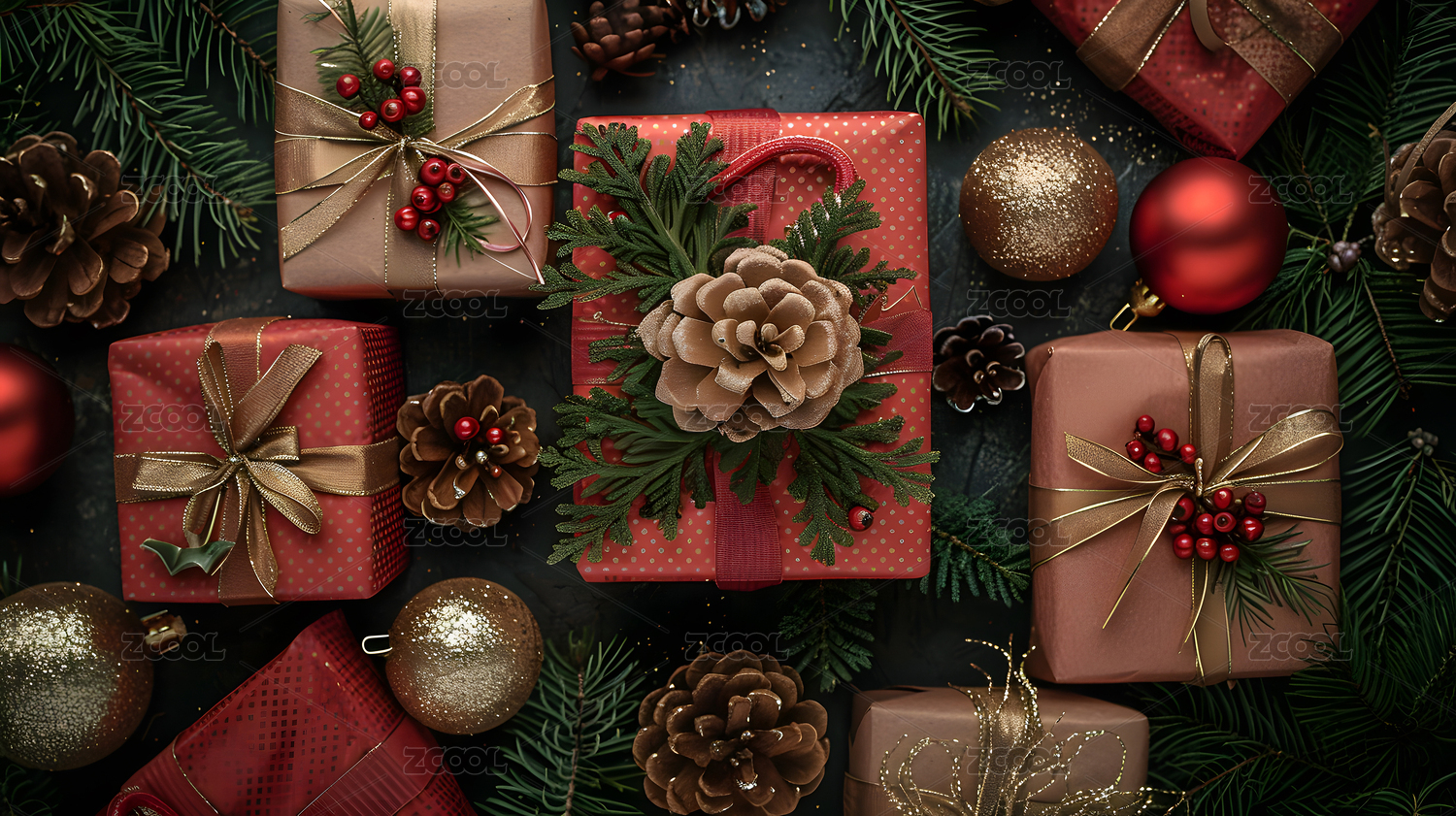 圣诞,礼物,装饰,节日,彩带,包装,糖果,饰品,松枝,喜庆