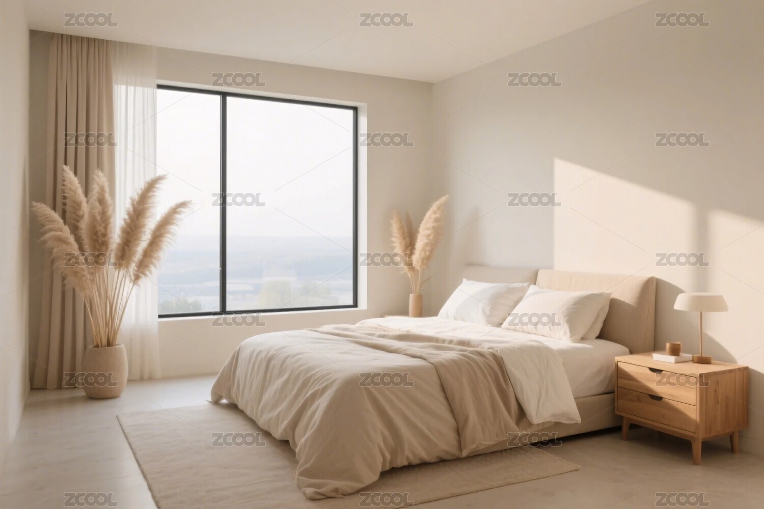 卧室,窗户,干花,简约,温馨,家居,插画,木质,自然,光线