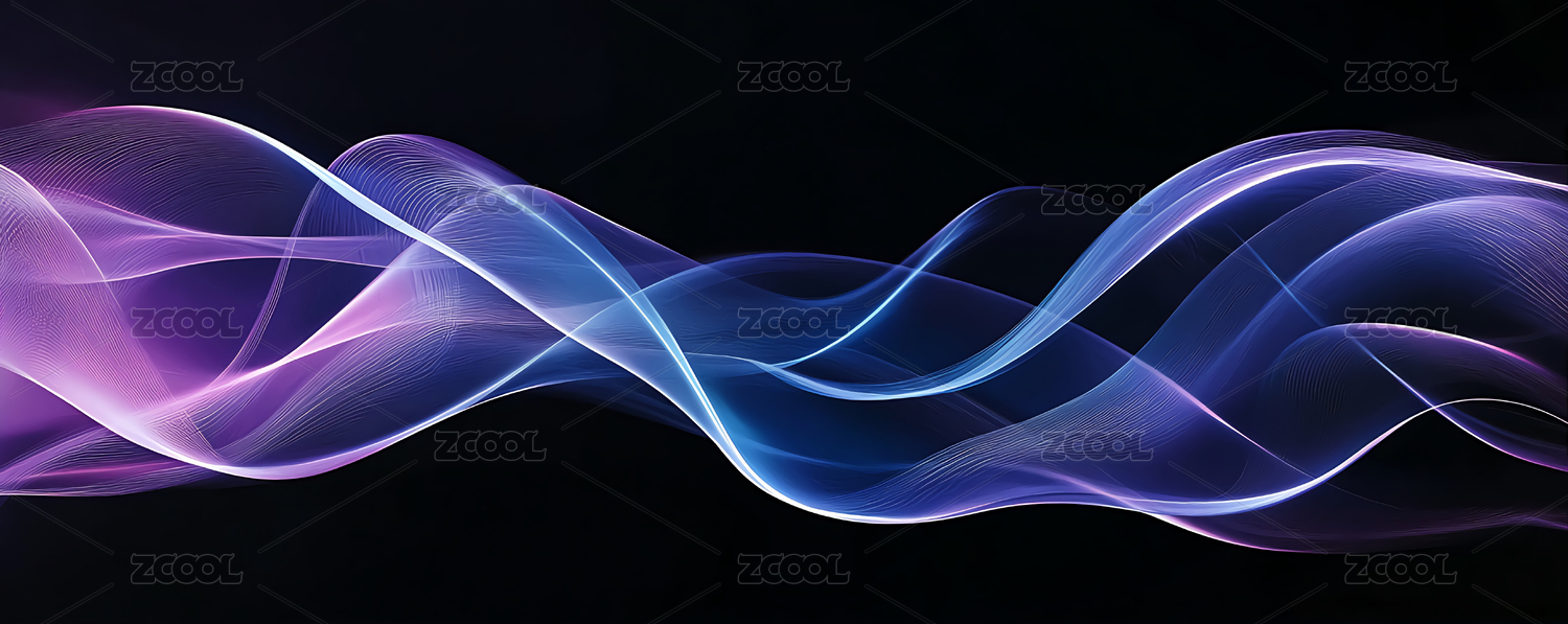 数码紫蓝色发光波浪曲线抽象图形海报背景