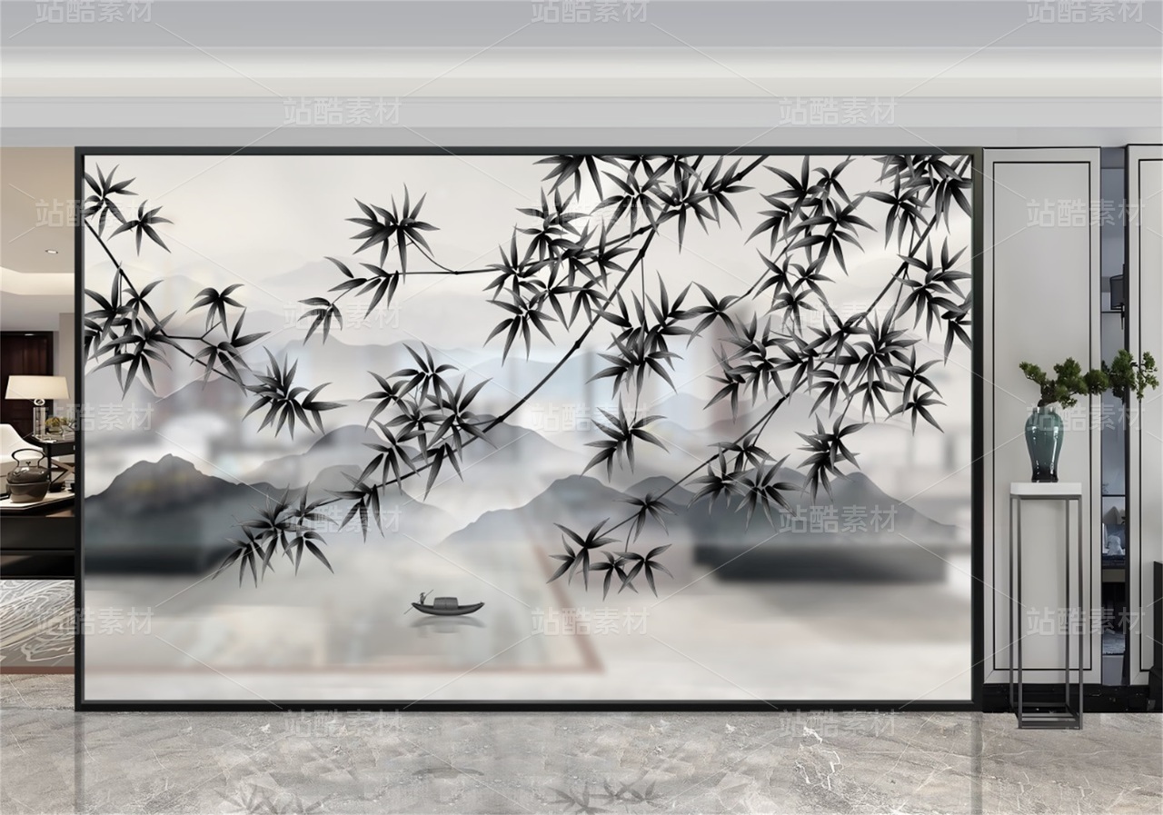 新中式竹子山水装饰画