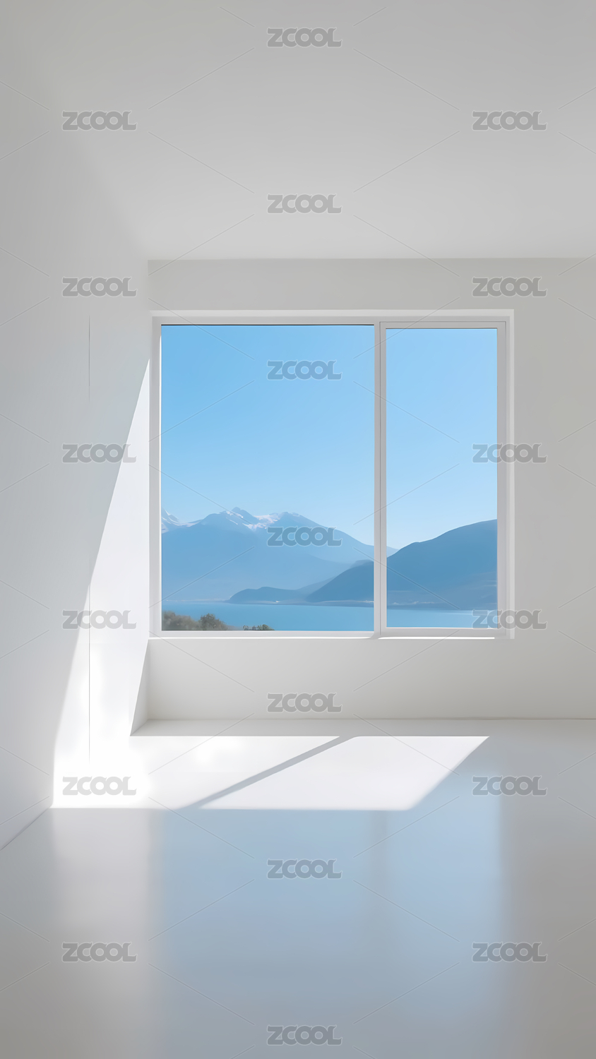 房间,窗户,山脉,自然,景观,室内,空间,木地板,白墙,现代