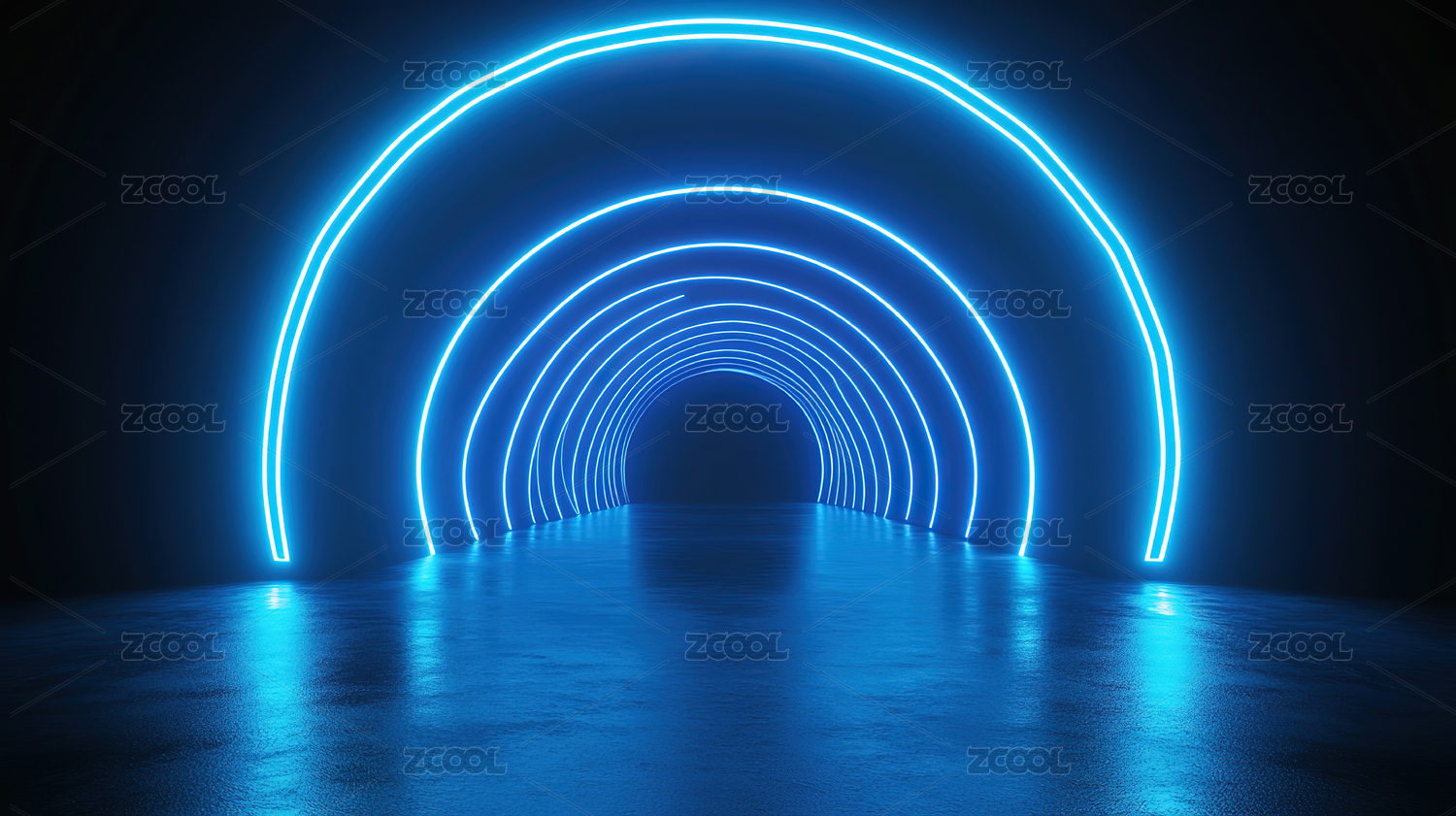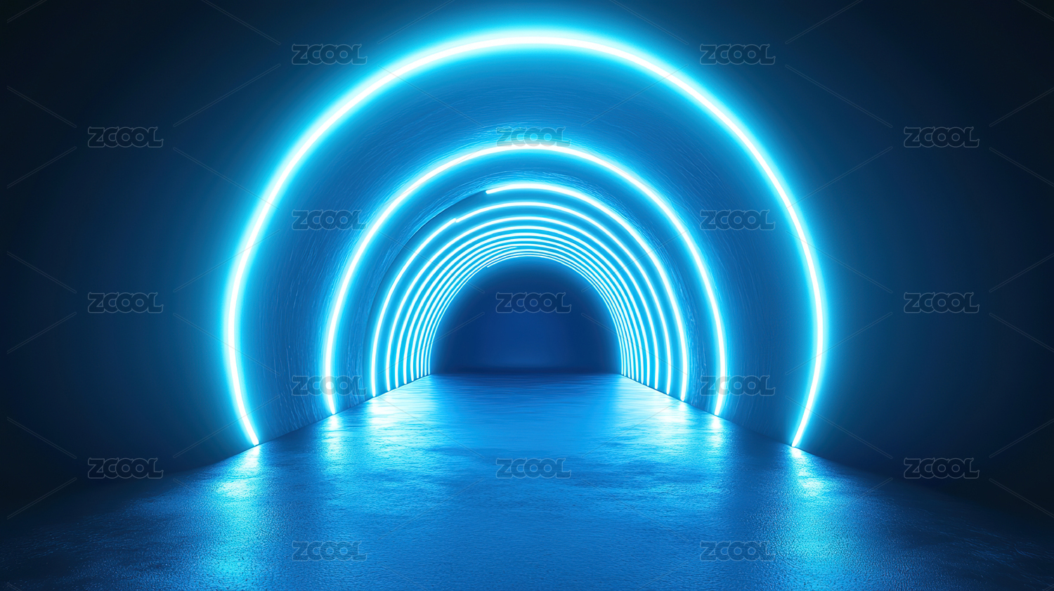 蓝色霓虹光圈隧道