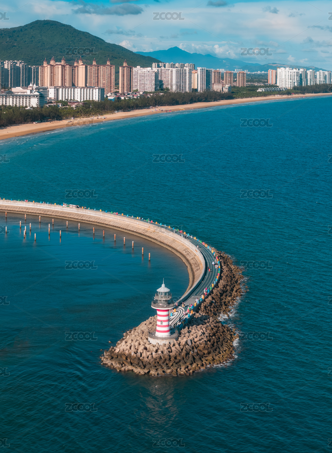 中国海南陵水清水湾自由灯塔海景航拍图