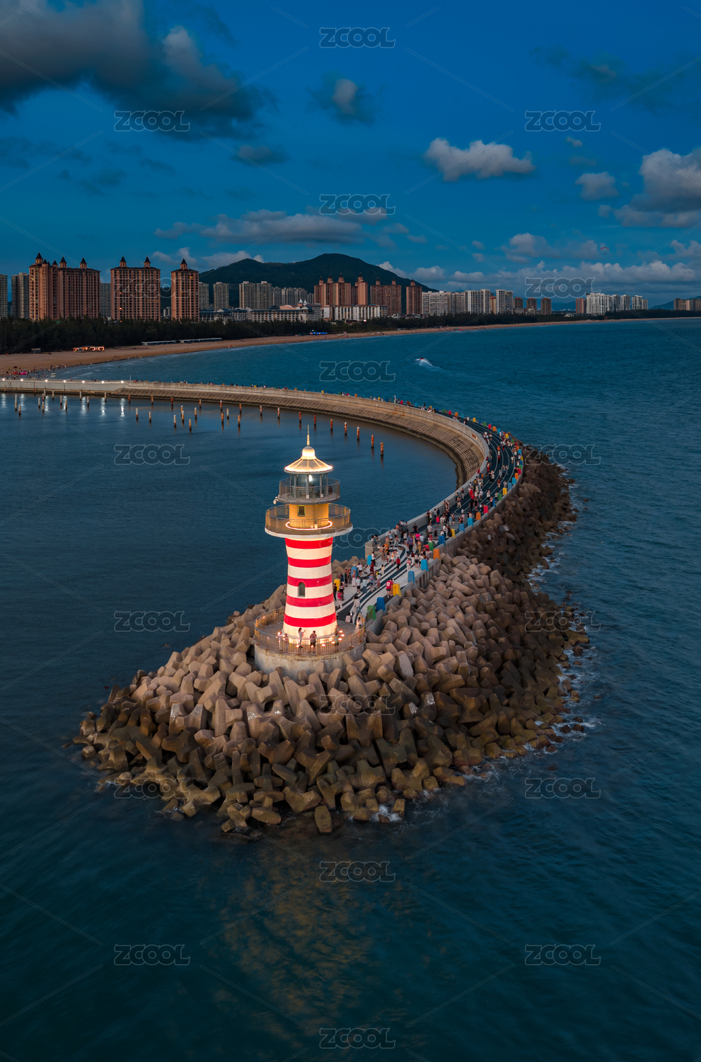 中国海南陵水清水湾自由灯塔夜景航拍图