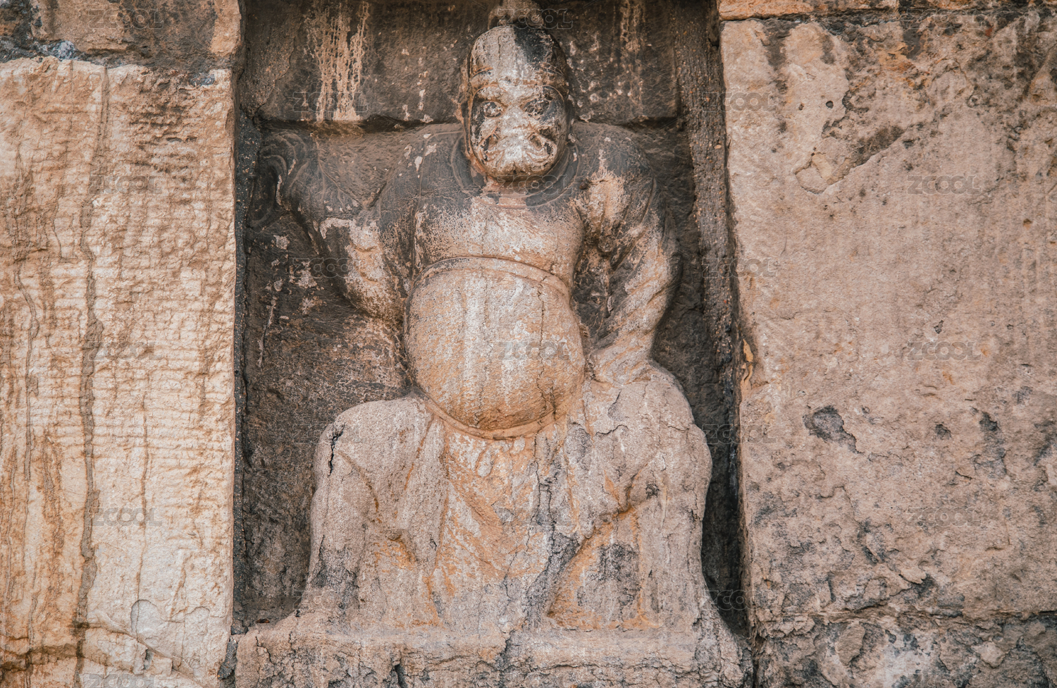 中国河南洛阳龙门石窟奉先寺的天王脚下踩的夜叉雕像