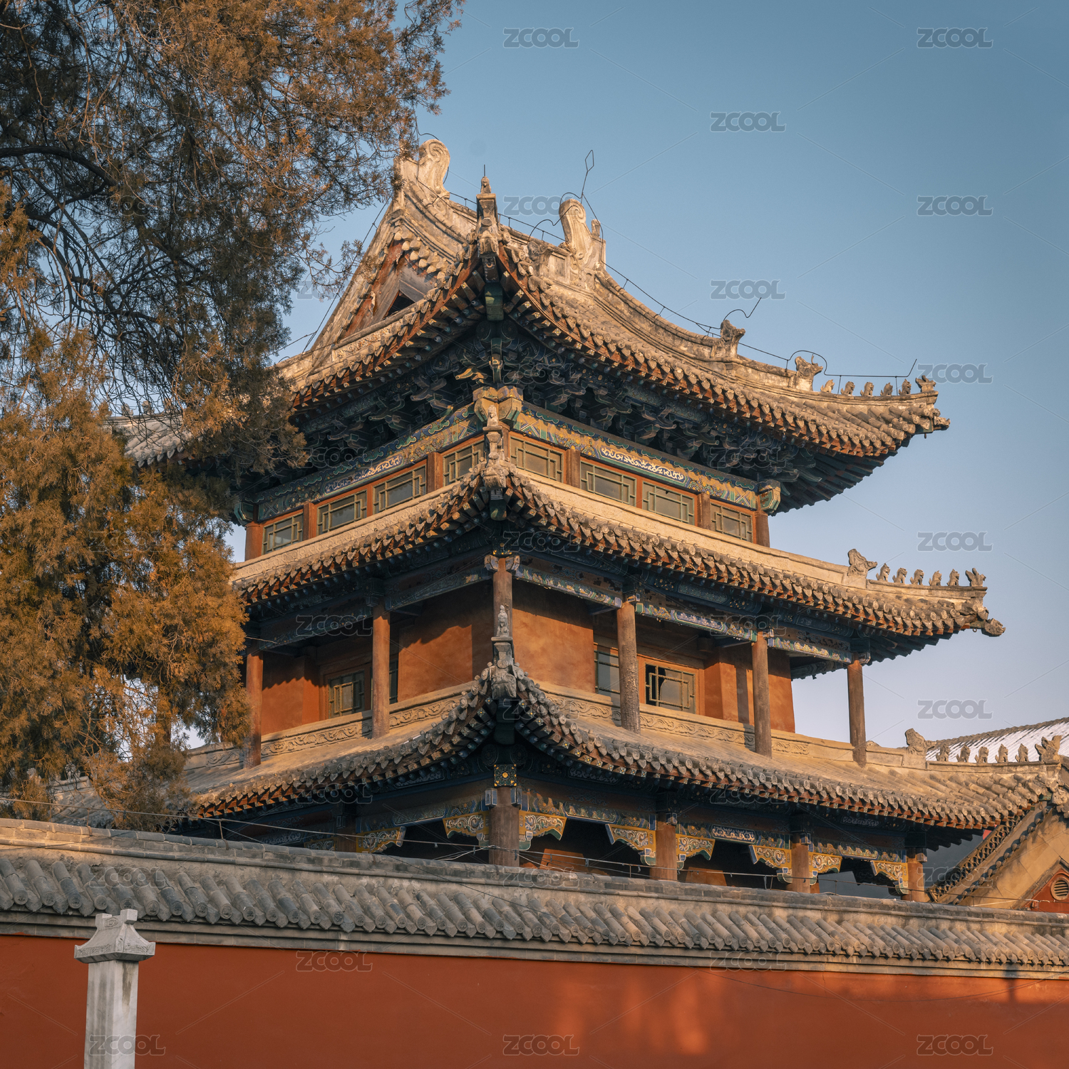 清晨时分中国北京故宫里的屋檐