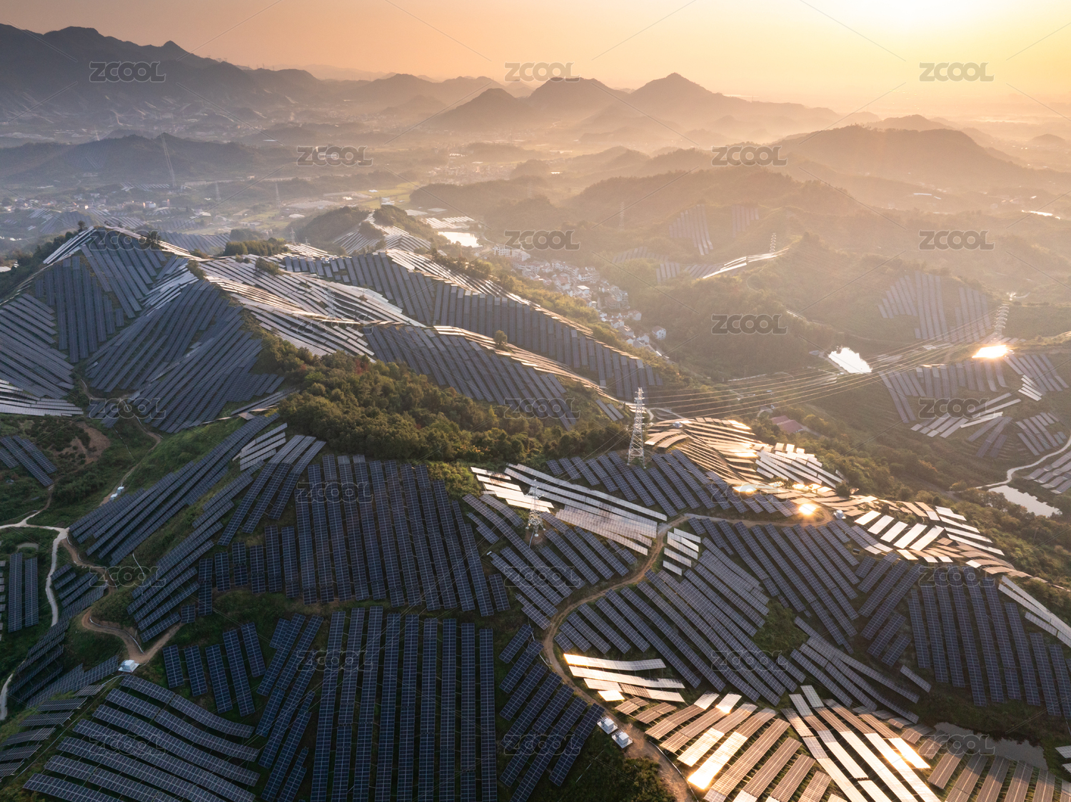 山上的光伏发电站太阳能新能源