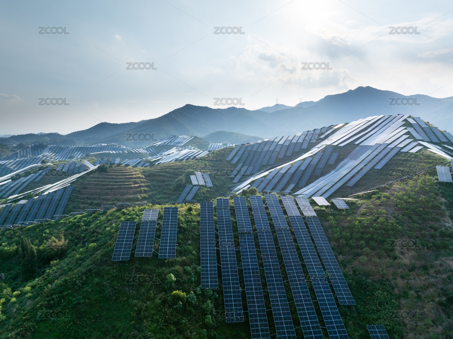 山上的光伏发电站太阳能新能源