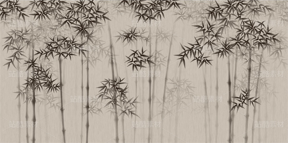 抽象竹鸟装饰画 新中式竹子画 朦胧竹子 适用于家装,酒店,文化场所等,用于做:背景墙、隔断、移门,屏风、玄关。高清分层图可以用UV打印。